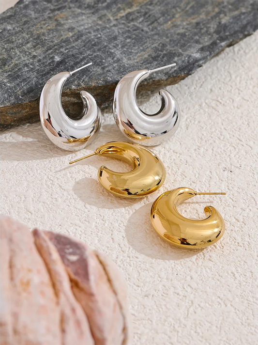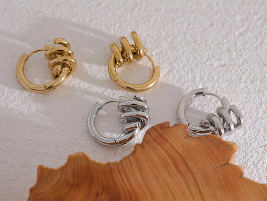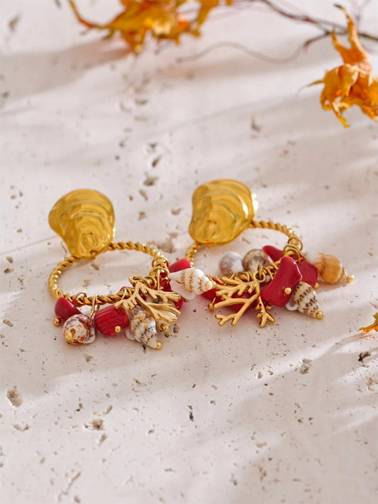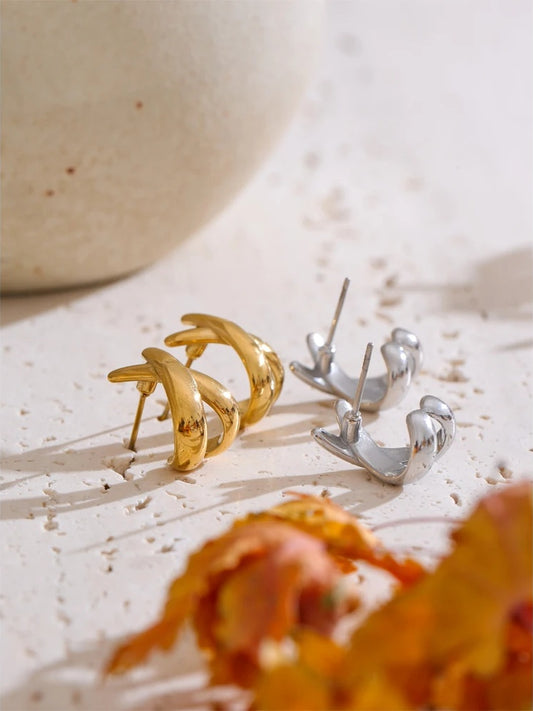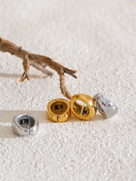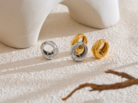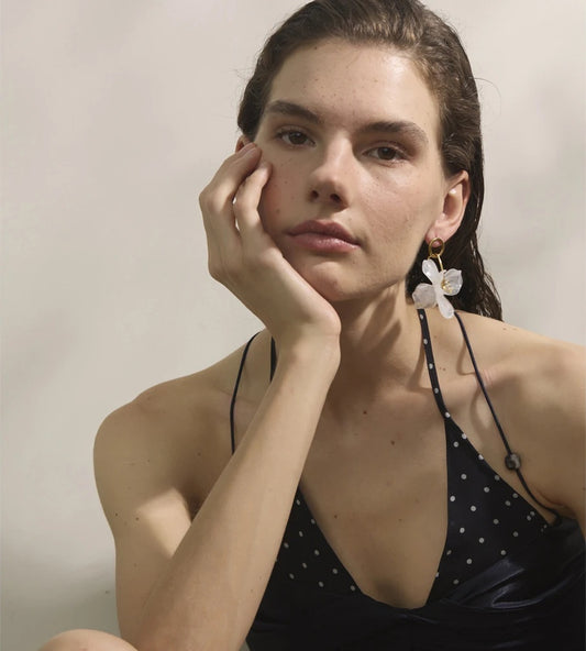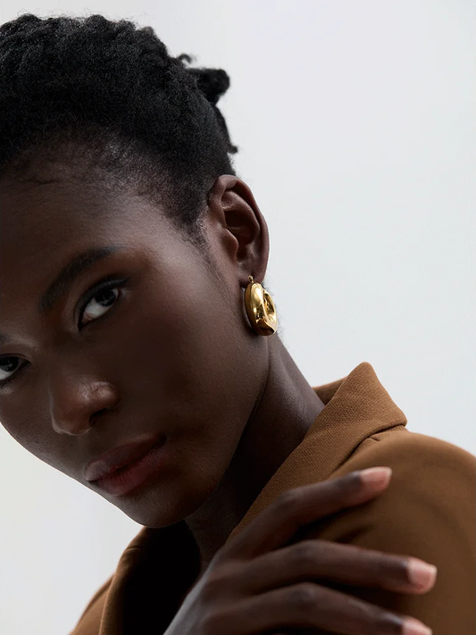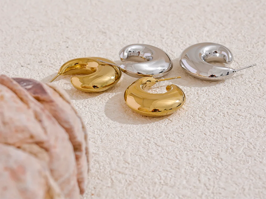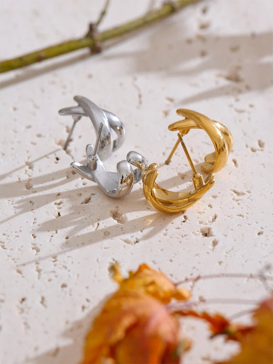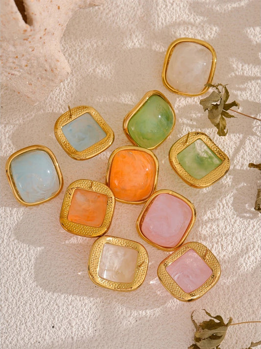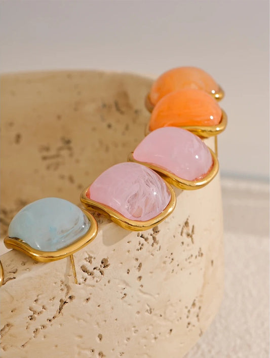Contemporary ear styles in gold tone, stainless steel, and resin. Mix minimal shapes with playful motifs and beach elements.
