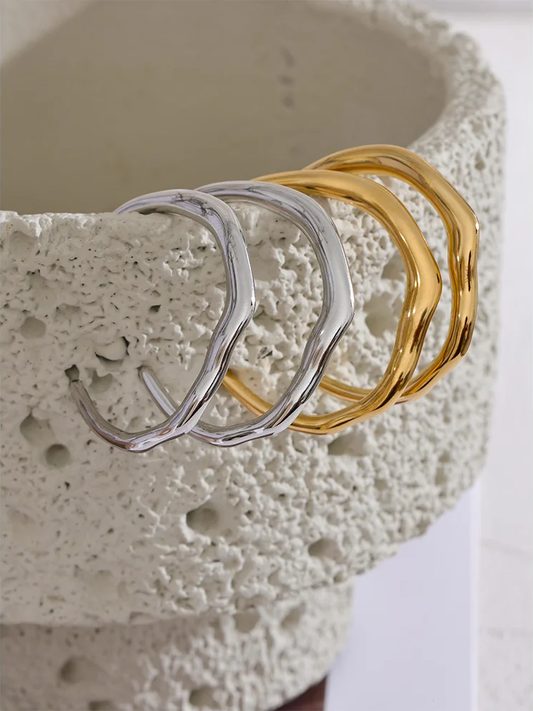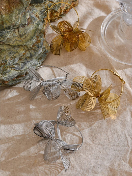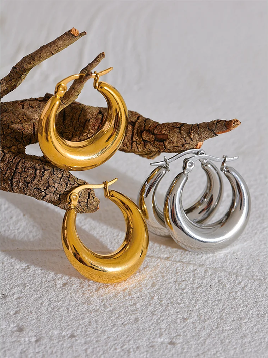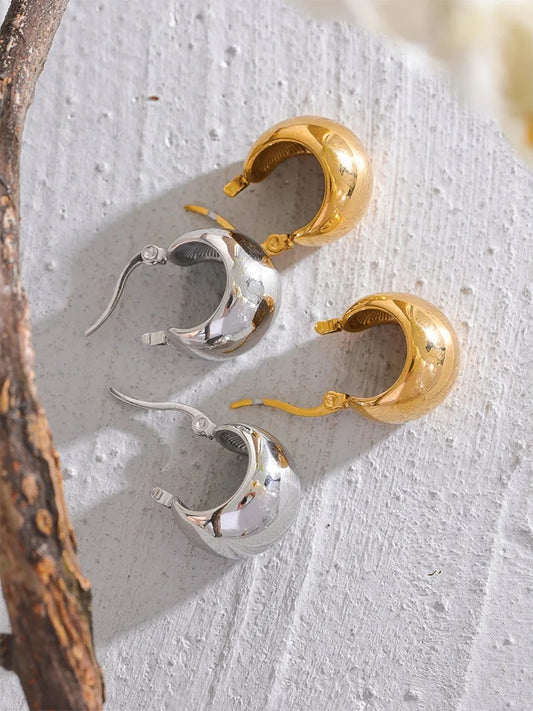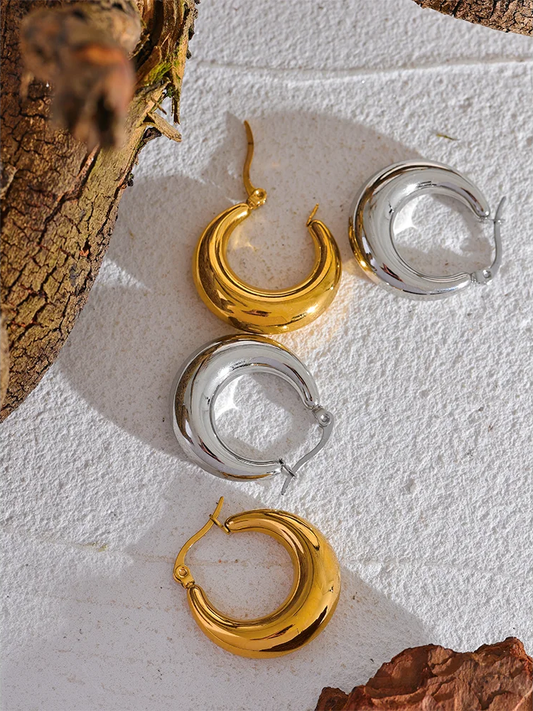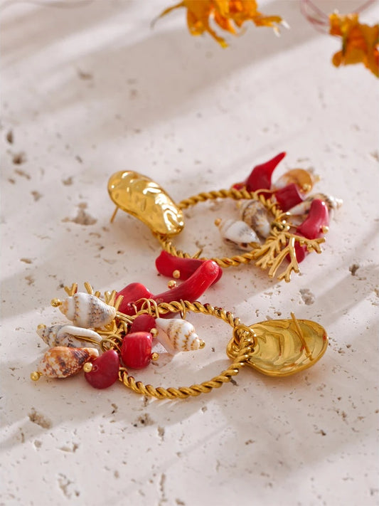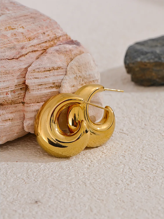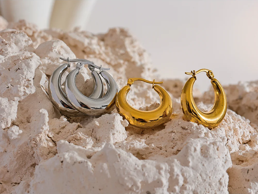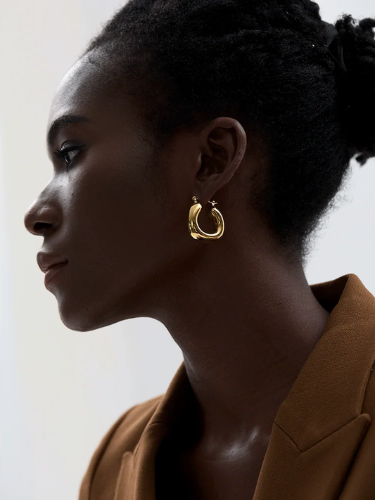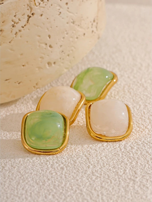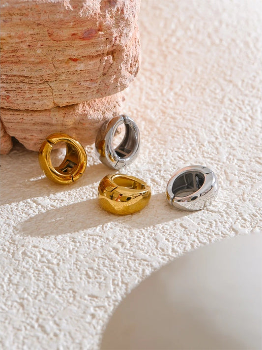 Contemporary ear styles in gold tone, stainless steel, and resin. Mix minimal shapes with playful motifs and beach elements.
