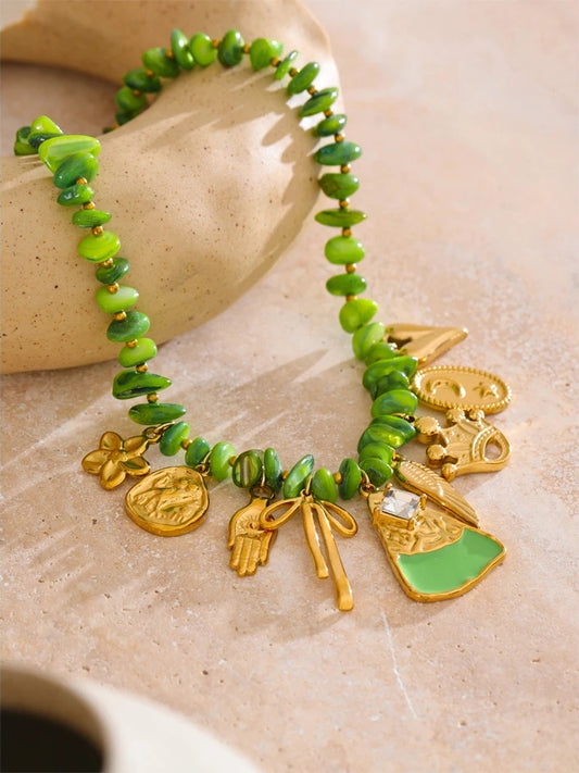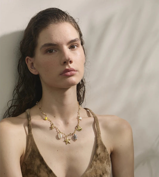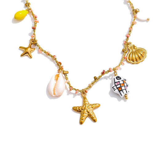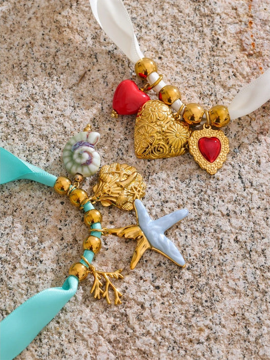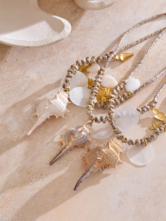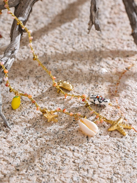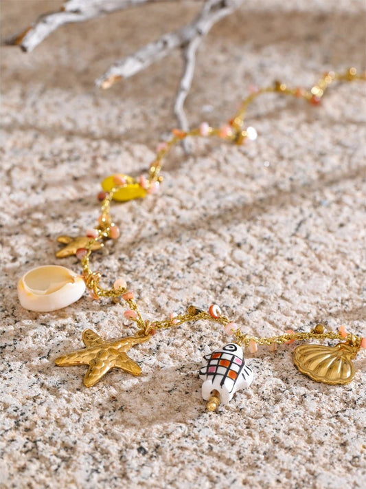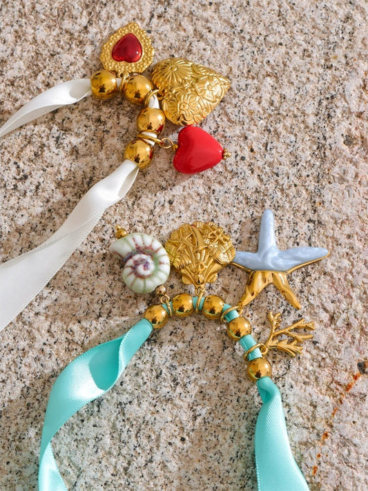 Season-spanning ocean elements crafted in metal, enamel, and natural shells. Perfect for vacations, festivals, and sunny weekends.