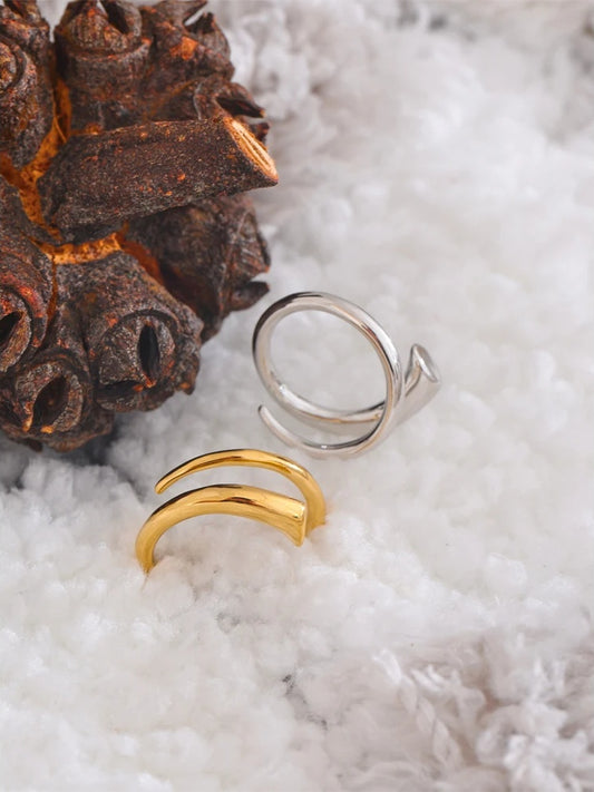 Versatile finger rings featuring open, adjustable, and classic fits. Designs range from sleek modern textures to nature and heart motifs.