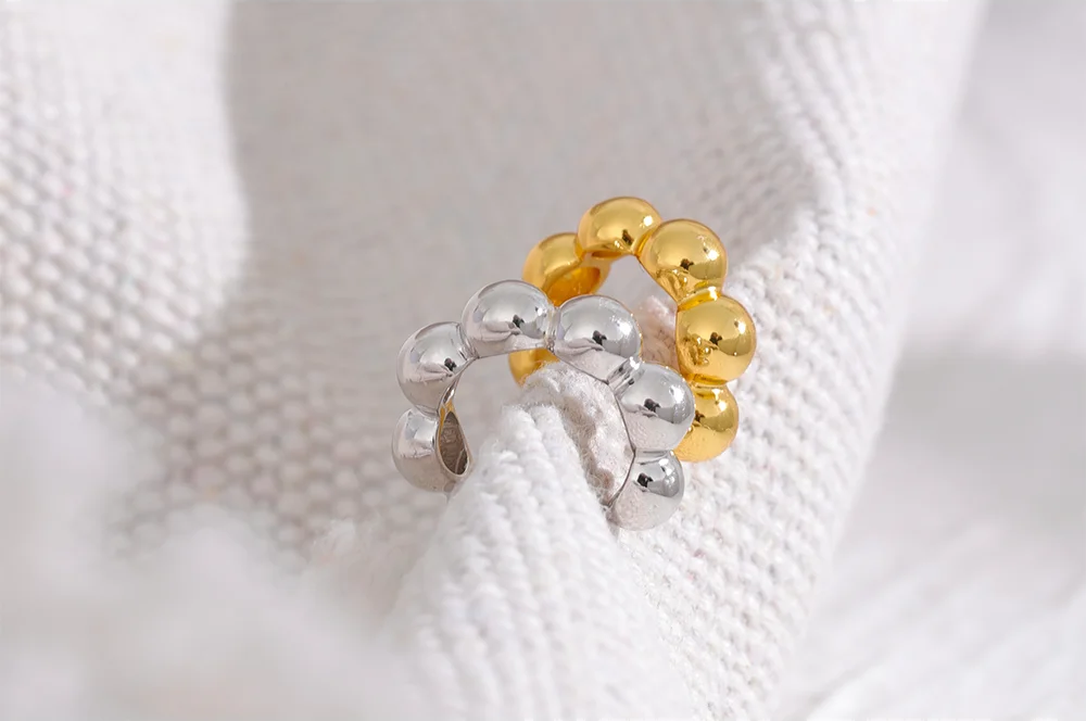 Crafted from 925 sterling silver with a real gold plating, this ear clip cuff offers a minimalist yet trendy look without the need for piercings. The geometric, rounded bead design provides a chic and modern aesthetic suitable for various occasions, particularly parties. Lightweight at just 1 gram, it ensures comfortable wear throughout the day. Available in gold and silver tones, it complements a wide range of styles effortlessly.