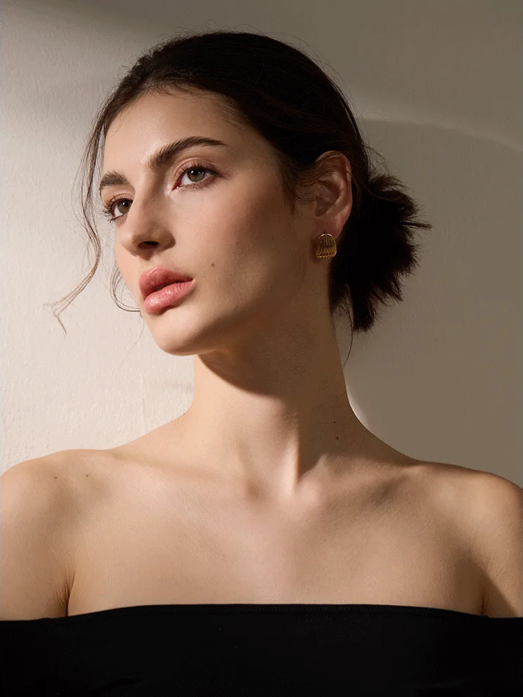 Crafted from durable stainless steel with a real gold PVD plating, these stud earrings feature an abstract geometric design that complements daily wear. The push-back fastening ensures secure and comfortable fit throughout the day. Water-resistant and trendy, these earrings offer a sleek metallic charm suitable for various occasions. Available in gold or platinum tones to match individual style preferences.