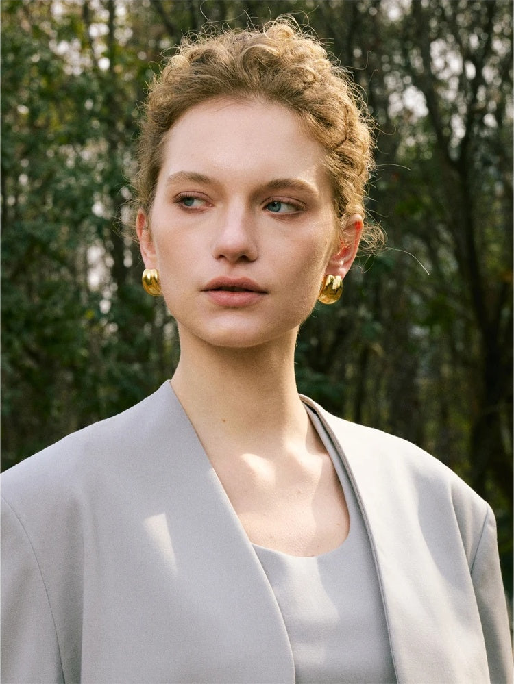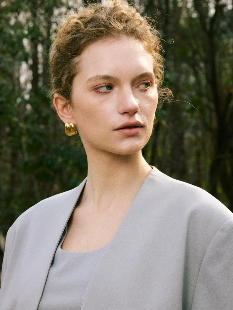These geometric stud earrings are a versatile staple—lightweight-looking, streamlined, and made for repeat wear. Their clean lines complement everything from a crisp white shirt to evening silhouettes, and they layer effortlessly with your favorite pieces.