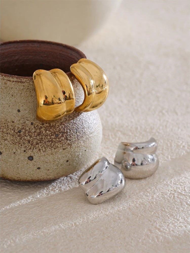 Elevate your everyday with these modern geometric stud earrings—sleek, minimalist, and crafted to last. A durable stainless-steel core is finished with PVD real gold plating for a luminous, gold-plated glow that resists water and daily wear while maintaining its polished shine.
