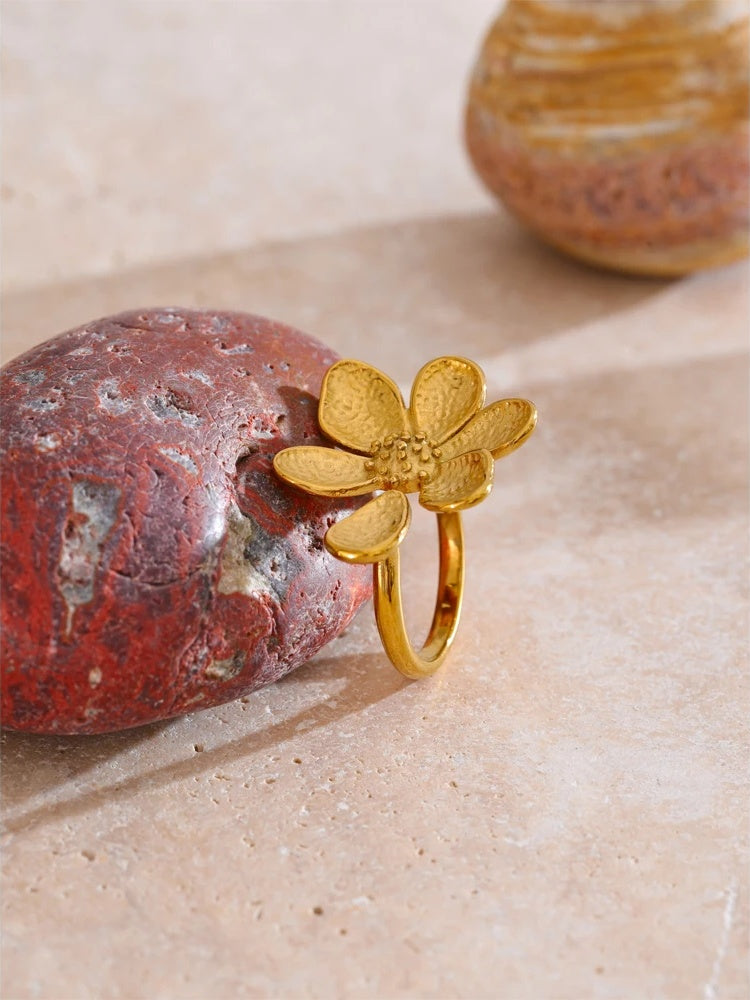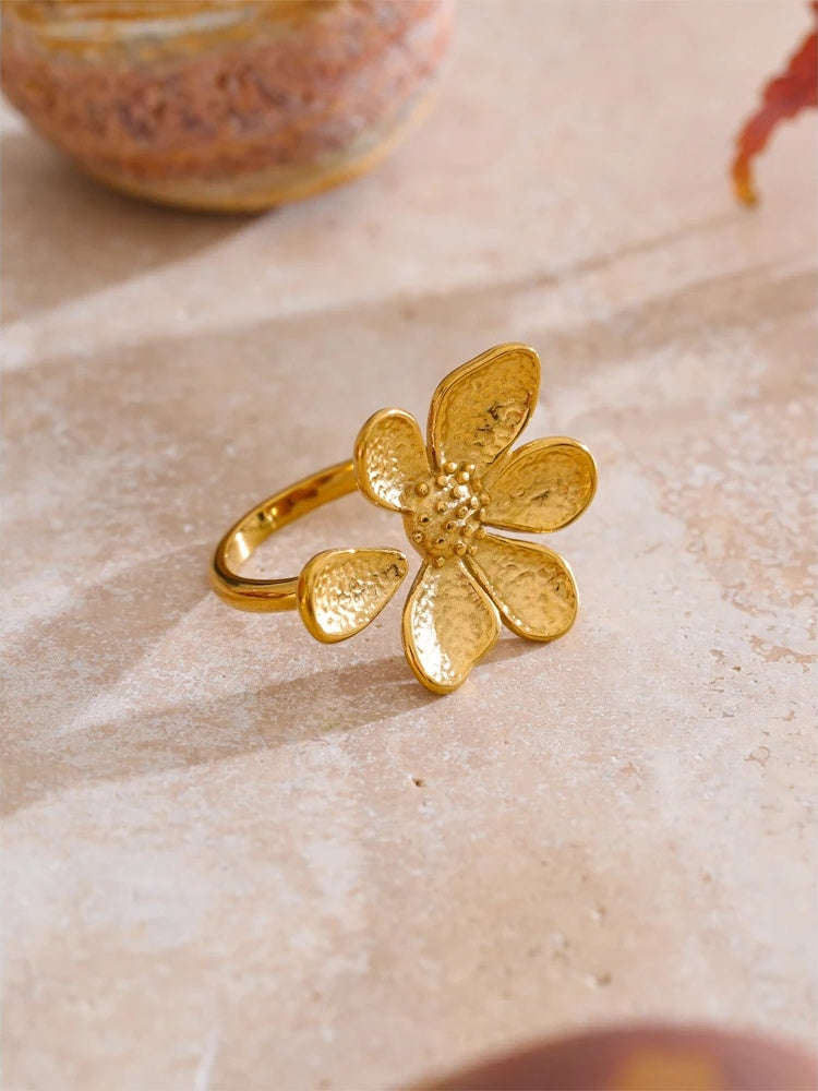 Style it solo for a minimal, modern look, or stack it with slim bands for extra dimension. This floral ring pairs beautifully with handcrafted hoops, gold-plated earrings, and dainty gemstone jewelry, making it a versatile addition to your collection and an easy match for both everyday outfits and party looks.