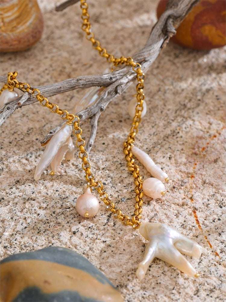 - Materials: Natural freshwater baroque pearl; stainless steel chain with a rich gold-plated finish.