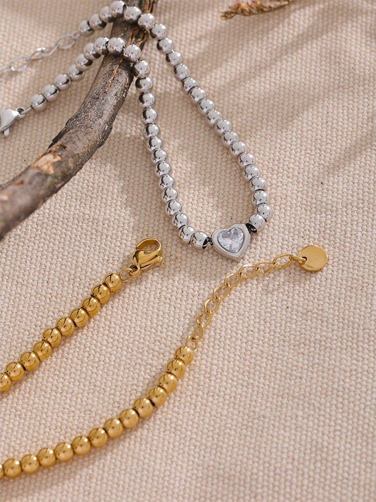 Beads Chain Heart Zircon Lobster Clasp Bracelet