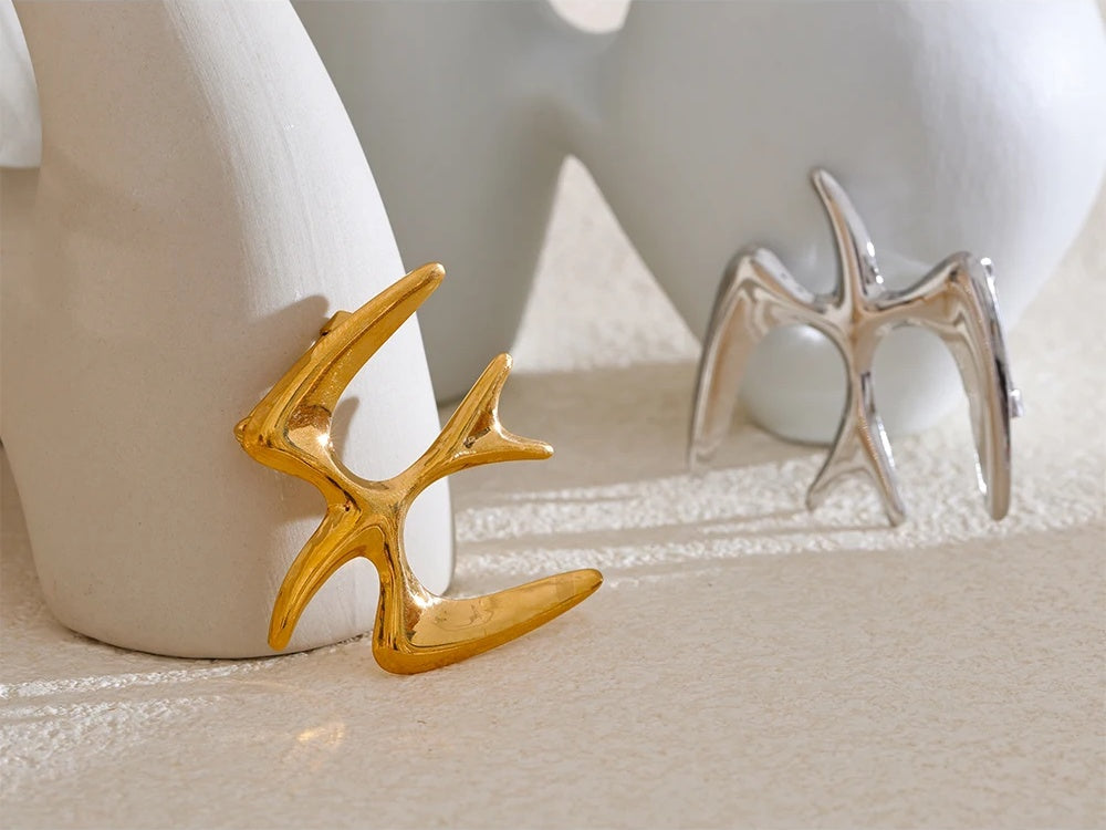 Crafted from stainless steel with a glossy finish, this brooch features a sleek abstract swallow design that combines modern artistry with timeless appeal. Its durable construction is enhanced with a water-resistant coating, ensuring lasting shine and wear. Available in polished gold or steel tones, the lightweight pin adds a subtle yet sophisticated accent to casual and trendy outfits.