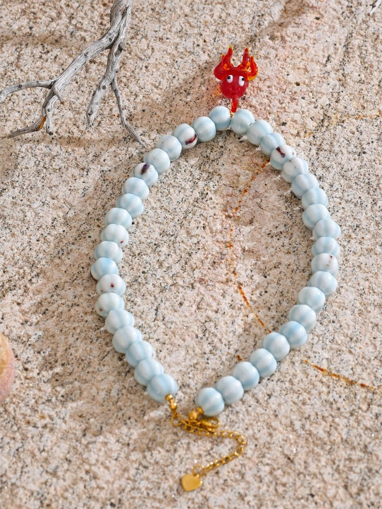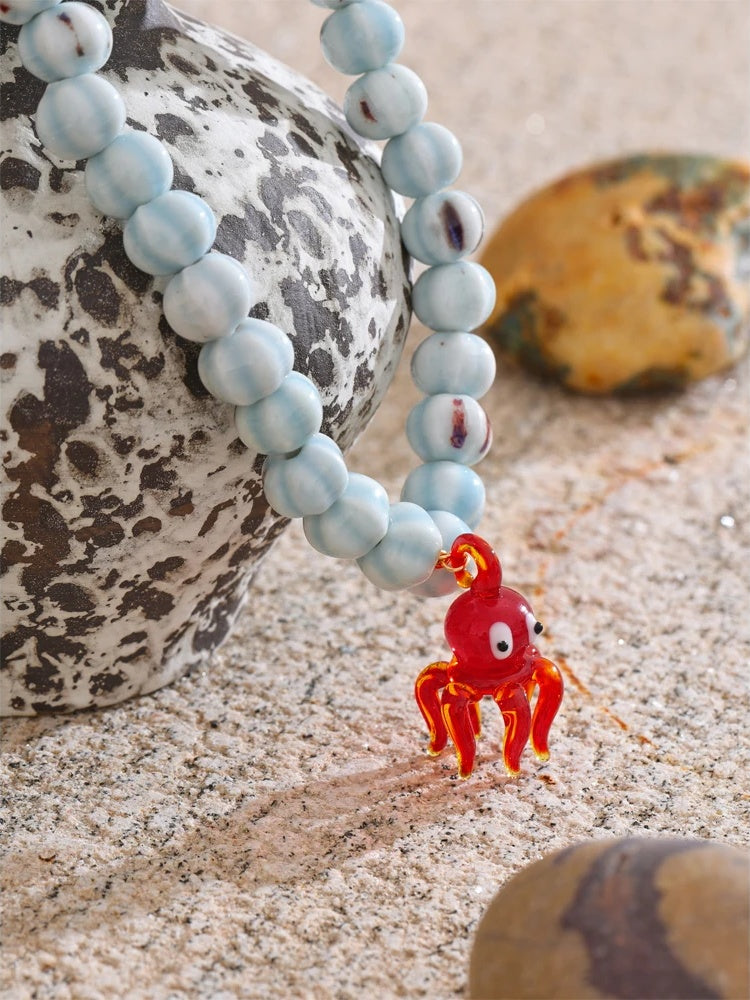 - Design: Blue ceramic bead necklace with a red octopus pendant for a distinctive, ocean-inspired aesthetic