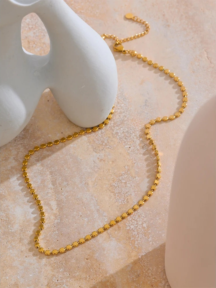 Crafted from durable stainless steel with a PVD real gold plating, this square chain collar necklace features a modern geometric design. The link chain construction ensures both strength and a comfortable fit for daily wear. Its shiny, bright finish makes it suitable for parties and trendy fashion looks. Compatible with various styles, this necklace adds a sleek, contemporary edge to any outfit.