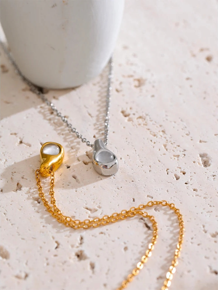 Choose your finish—gold or steel—and add this versatile, geometric pendant to your everyday rotation with confidence.