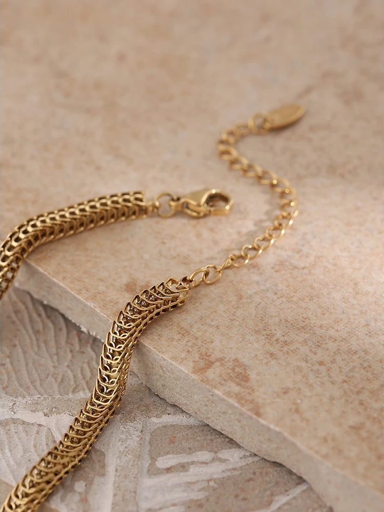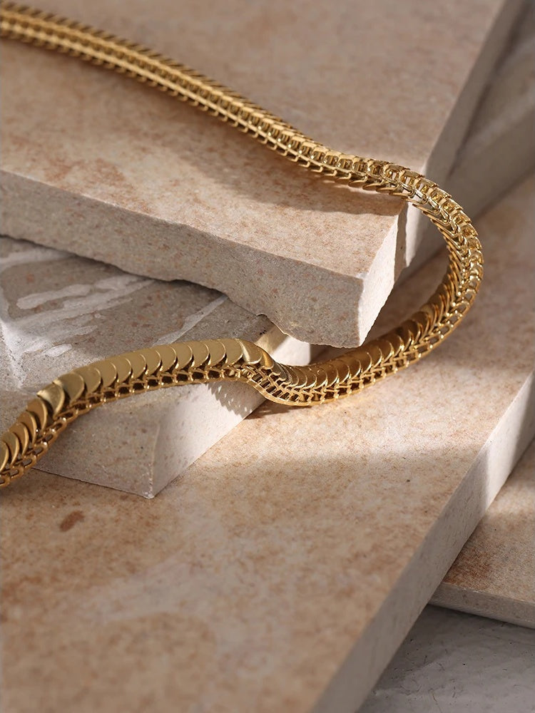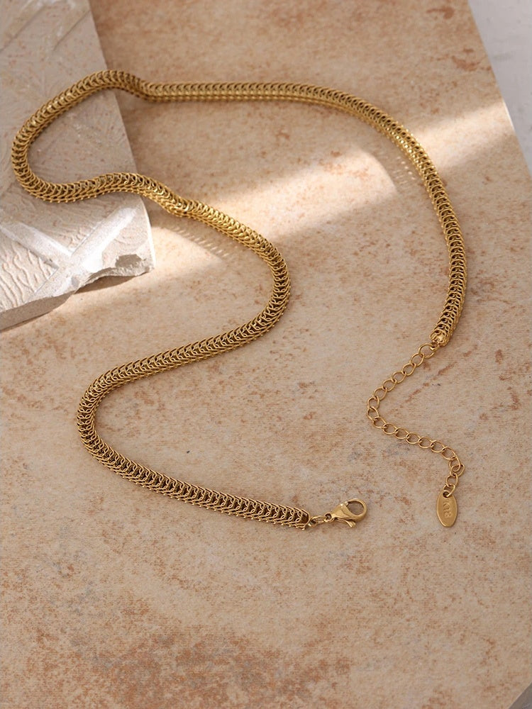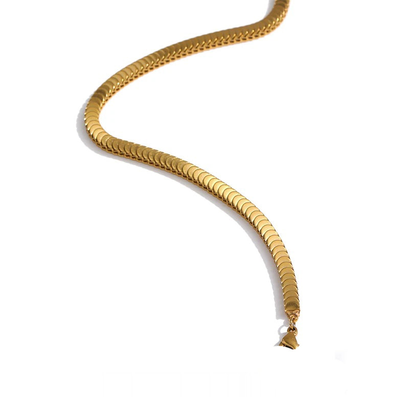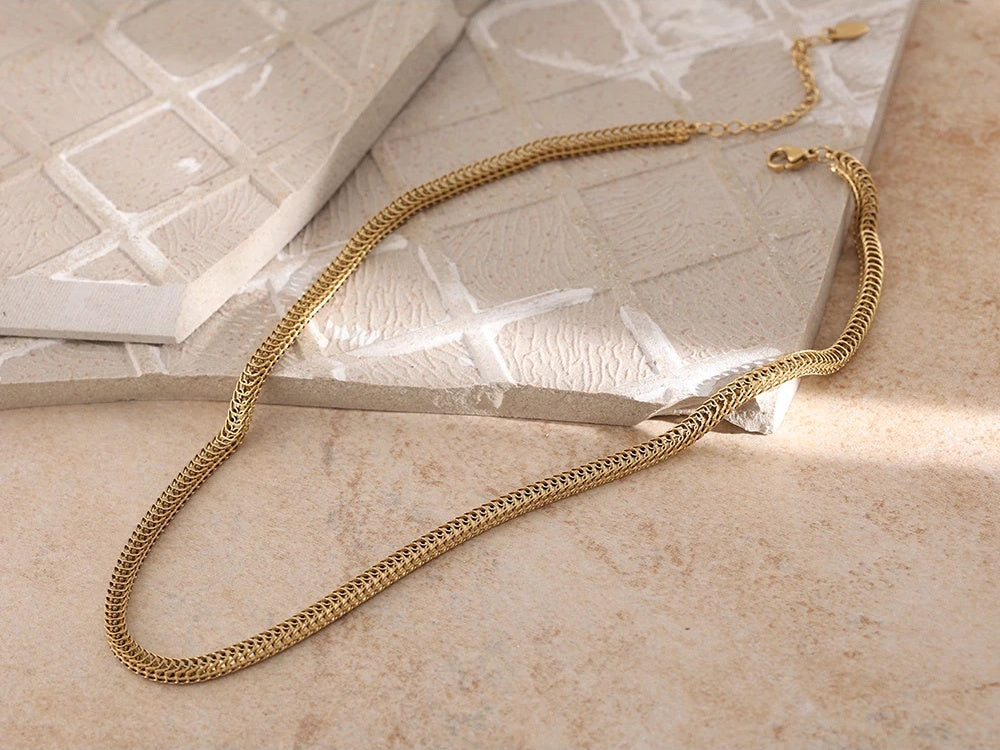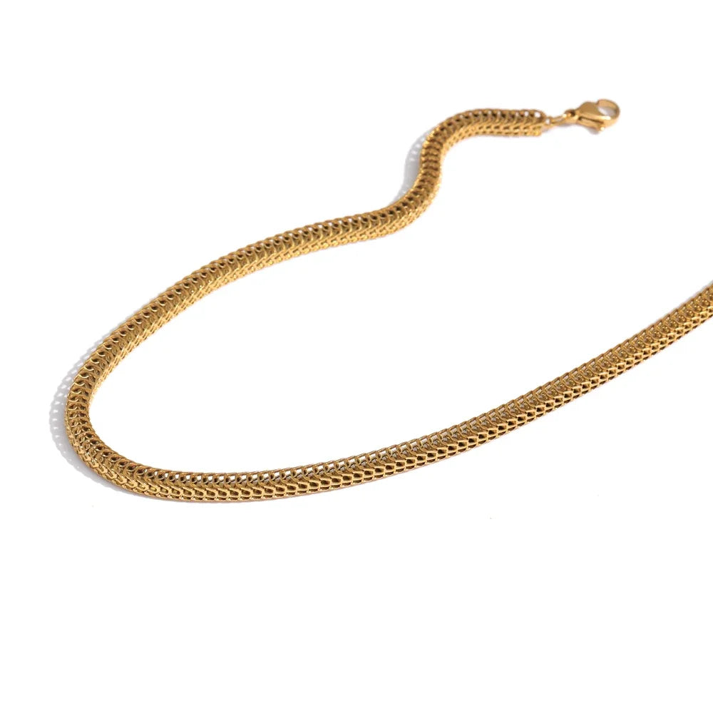 Crafted from durable stainless steel with an 18K PVD gold plating, this chain necklace offers both elegance and long-lasting wear. Its sleek, geometric design complements a variety of outfits, making it a versatile addition to any jewelry collection. Water-resistant properties ensure it maintains its shine and quality through daily use. Lightweight and comfortable, it’s designed specifically for women seeking trendy, high-quality fashion accessories.
