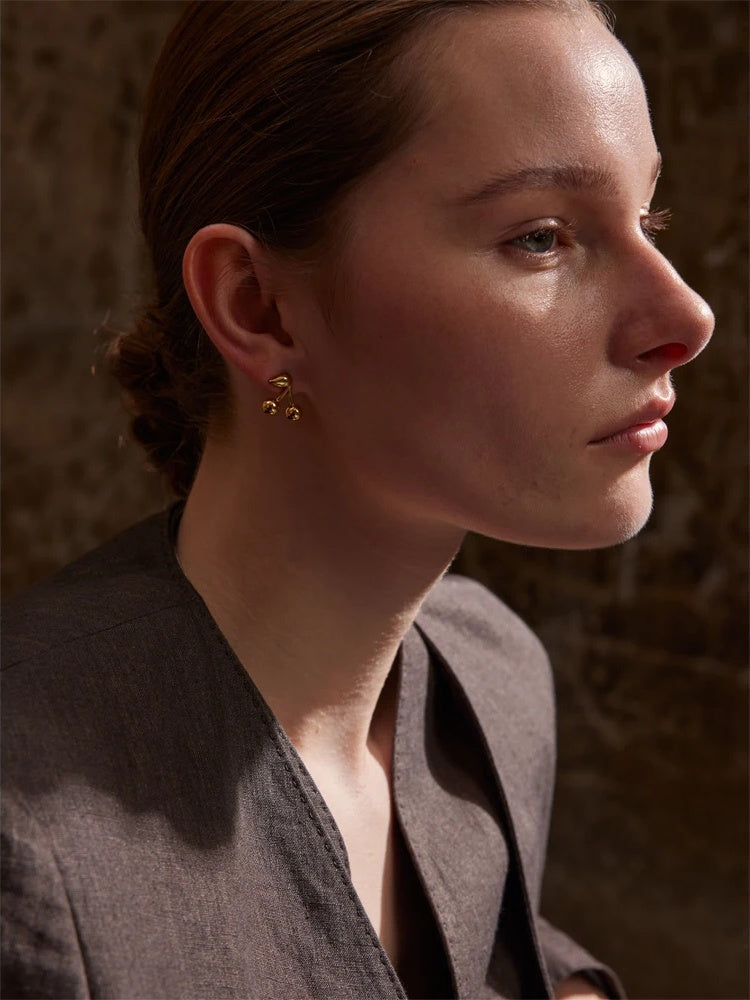 Crafted from durable 316L stainless steel with an 18K PVD gold plating, these stud earrings offer a sleek and minimalist cherry design. Designed to resist water and everyday wear, they maintain their shine and charm over time. The push-back closure ensures a secure fit, making them suitable for all-day comfort. A trendy accessory that complements a variety of styles with polished geometric elegance.