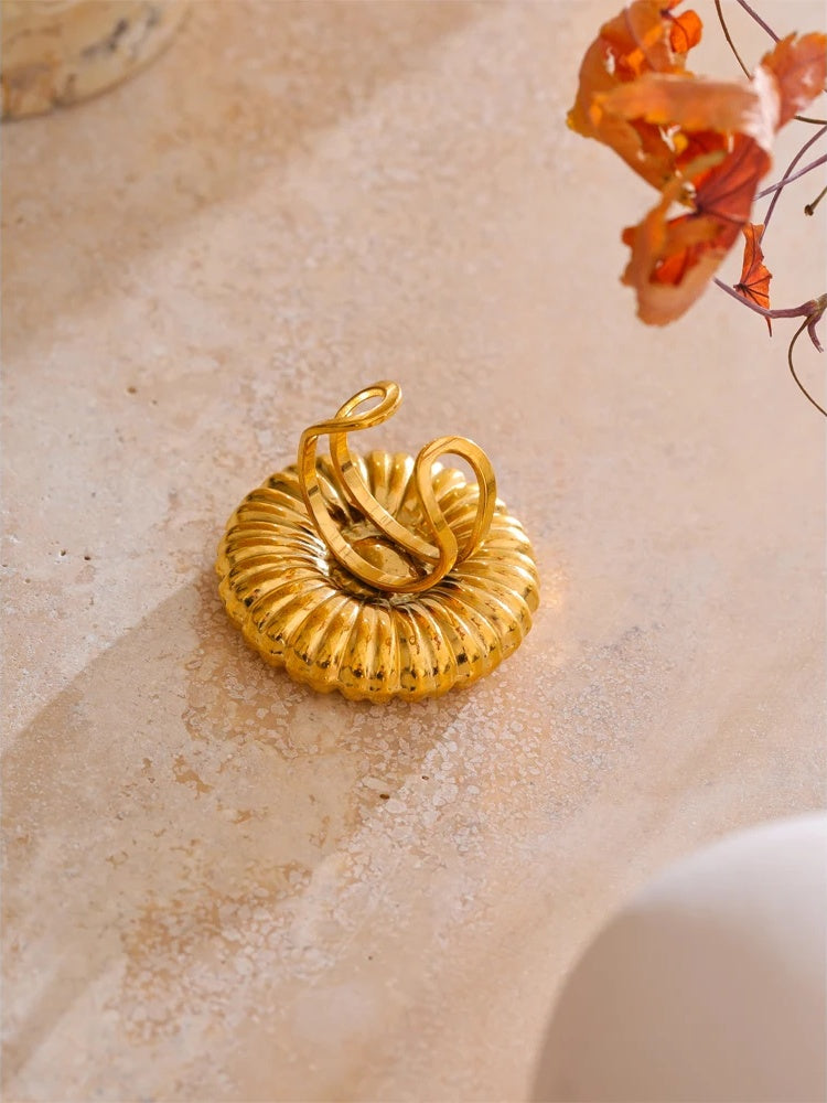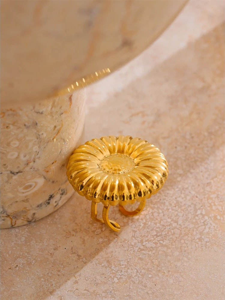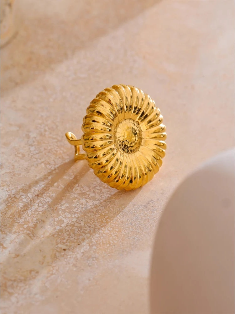 Versatile enough for everyday wear yet striking enough for evenings out, this adjustable gold ring pairs beautifully with minimalist bands or stands alone as your signature statement ring. For a coordinated look, style it with our handcrafted hoops, gold‑plated earrings, or dainty gemstone jewelry.