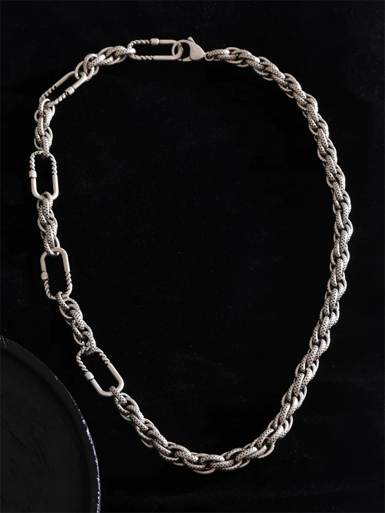 Elevate your everyday look with a retro-inspired stainless steel chain that balances bold design with lasting wear. Measuring 55 cm (about 21.7 in), this textured link necklace showcases a geometric pattern that adds clean structure and subtle edge—polished enough for the office, striking enough for a night out.