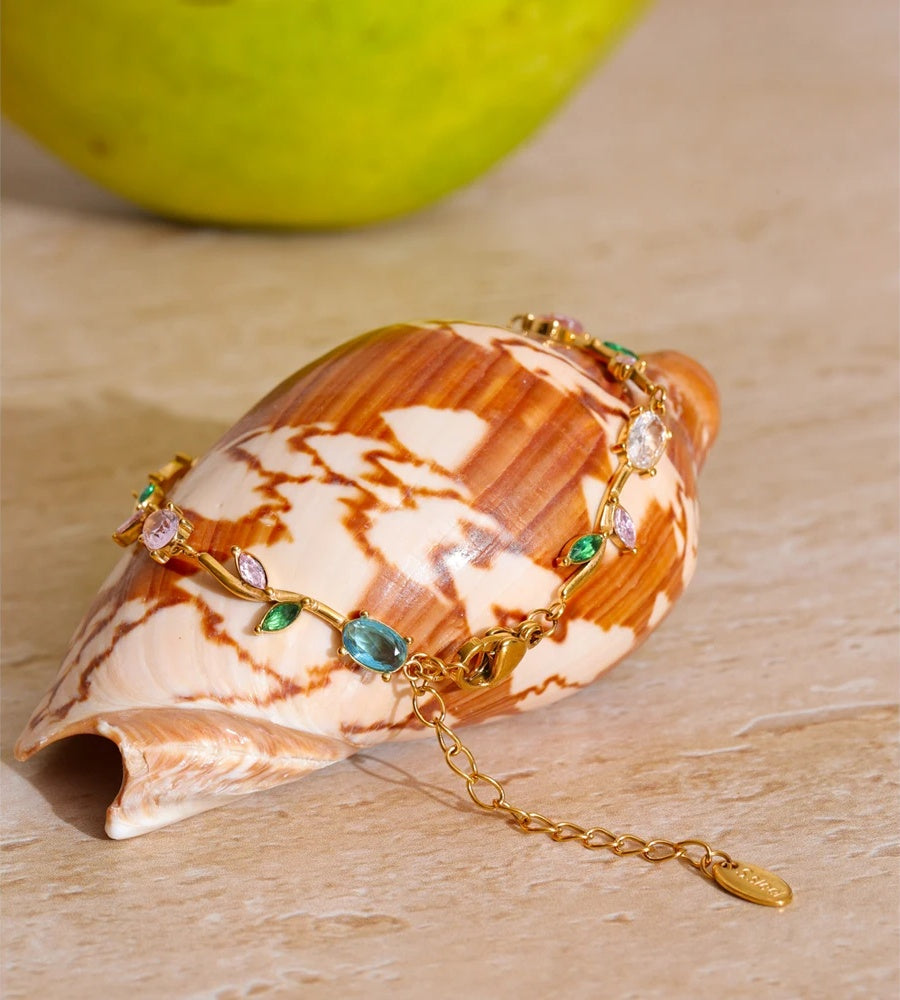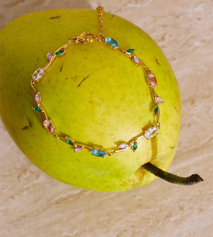 Colorful Cubic Zirconia Leaf Chain Bracelet Women's