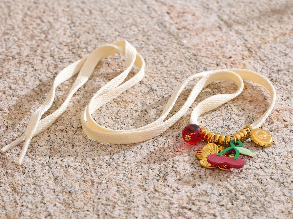 A set of colorful shoelace charms featuring playful designs like seashells, seahorses, fruits, and flowers. Crafted from simulated pearls and stainless steel with PVD real gold plating, each charm adds a unique touch to casual boots or shoes. The 100cm shoelaces come in soft pastel colors including pink, green, beige, and blue, enhancing both style and comfort. Ideal for those looking to personalize their footwear with trendy, eye-catching accessories.