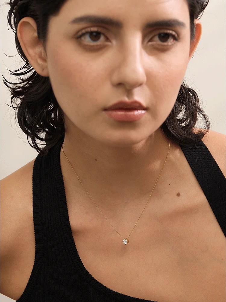 Crafted from durable stainless steel with a PVD real gold plating option, this pendant necklace features a sparkling cubic zirconia stone set in a sleek geometric design. The chain’s delicate link style complements both the gold and steel finishes, making it suitable for daily wear. Water-resistant and designed to maintain its shine, this necklace offers a blend of modern elegance and lasting quality. Its minimalist aesthetic pairs effortlessly with a variety of outfits.