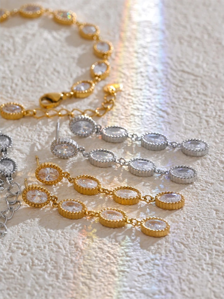 Cubic Zirconia Oval Chain Bracelet Earrings Set