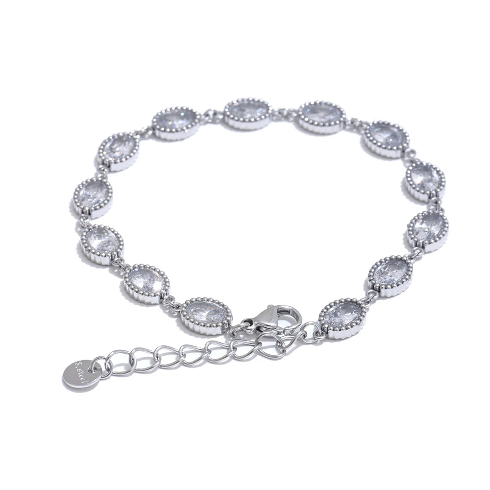 Elevate your everyday with a bracelet that balances subtle sparkle and modern design. Crafted from durable 316L stainless steel, this delicate oval-link chain is accented with petite cubic zirconia for a refined, light-catching finish. An adjustable length creates a tailored, comfortable fit for most wrists, making it an effortless choice from workdays to weekends.