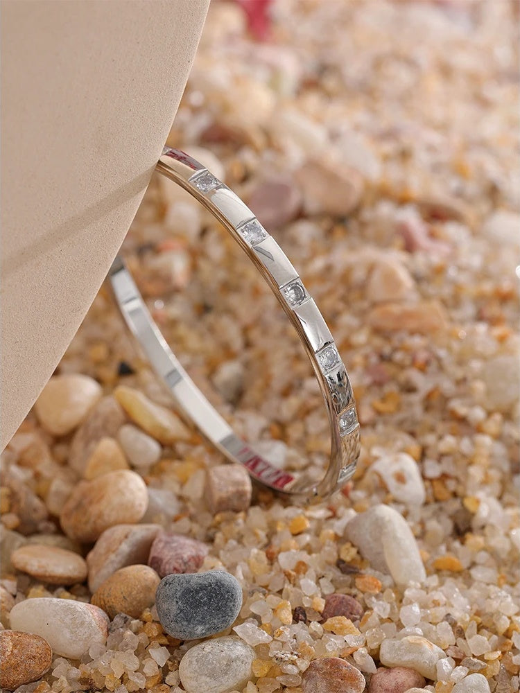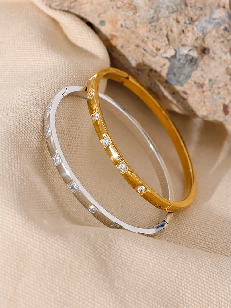 Cubic Zirconia Stainless Steel Wrist Bangle Bracelet