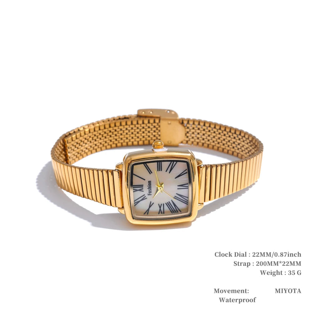 A digital square dial watch designed with polished stainless steel and finished in a shiny 18K gold PVD plating for a sleek, luxurious look. Equipped with Japanese digital movement, it offers reliable timekeeping and includes a battery for immediate use. The watch features a durable glass dial window and a water resistance depth of up to 3 bars, suitable for everyday wear. Its stainless steel band and secure leather deployment clasp ensure comfort and style, making it a versatile accessory for fashion and casual occasions.
