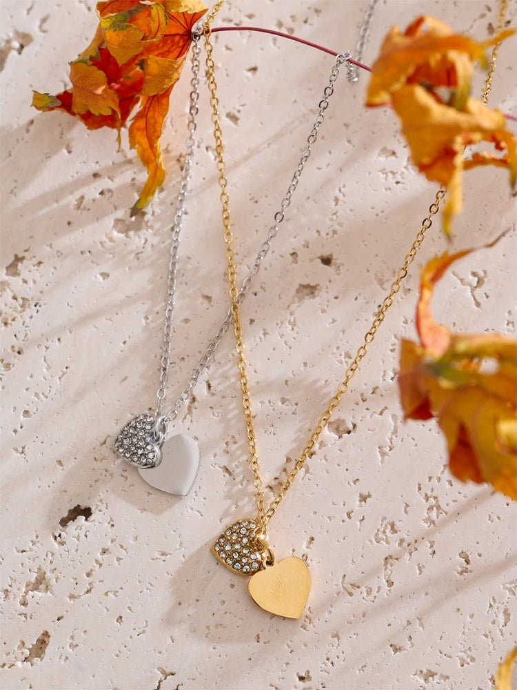 Double-Layer Heart Love Inlaid Zirconia Pendant Necklace