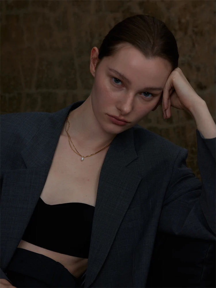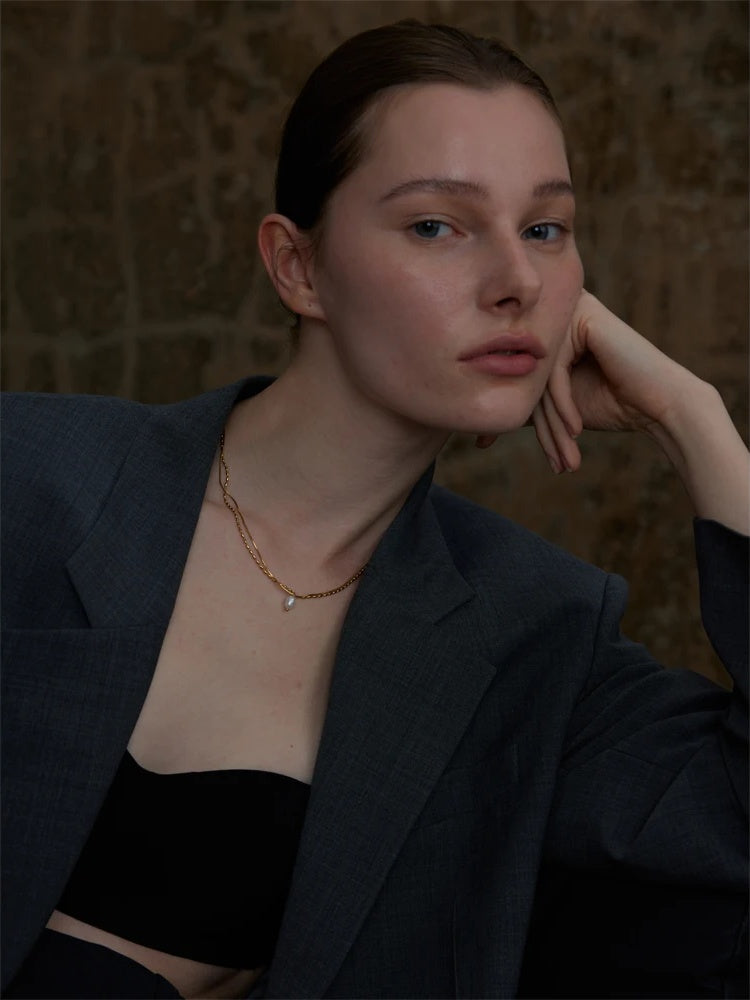 Double-layered Chain Natural Pearl Minimalist Pendant