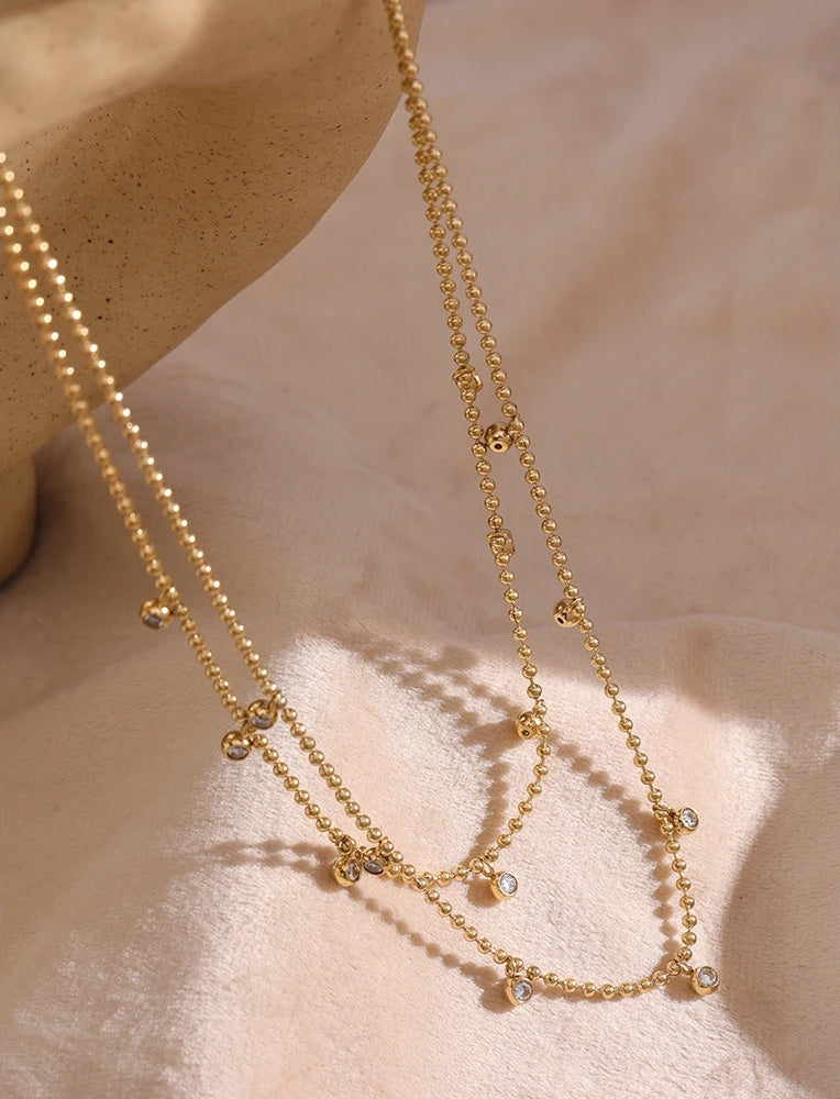 Double Layered Cubic Zirconia Bead Chain Necklace
