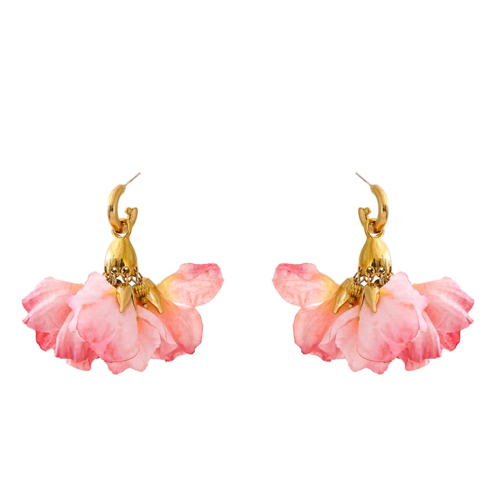Fairy Romantic Pink Cloth Flower Drop Earrings