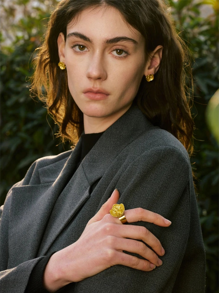 How to style: Wear the studs solo for a minimalist touch, or pair them with your favorite huggies or hoops for a curated ear stack. The matching ring adds a cohesive finish—perfect with casual denim, office tailoring, or party looks.