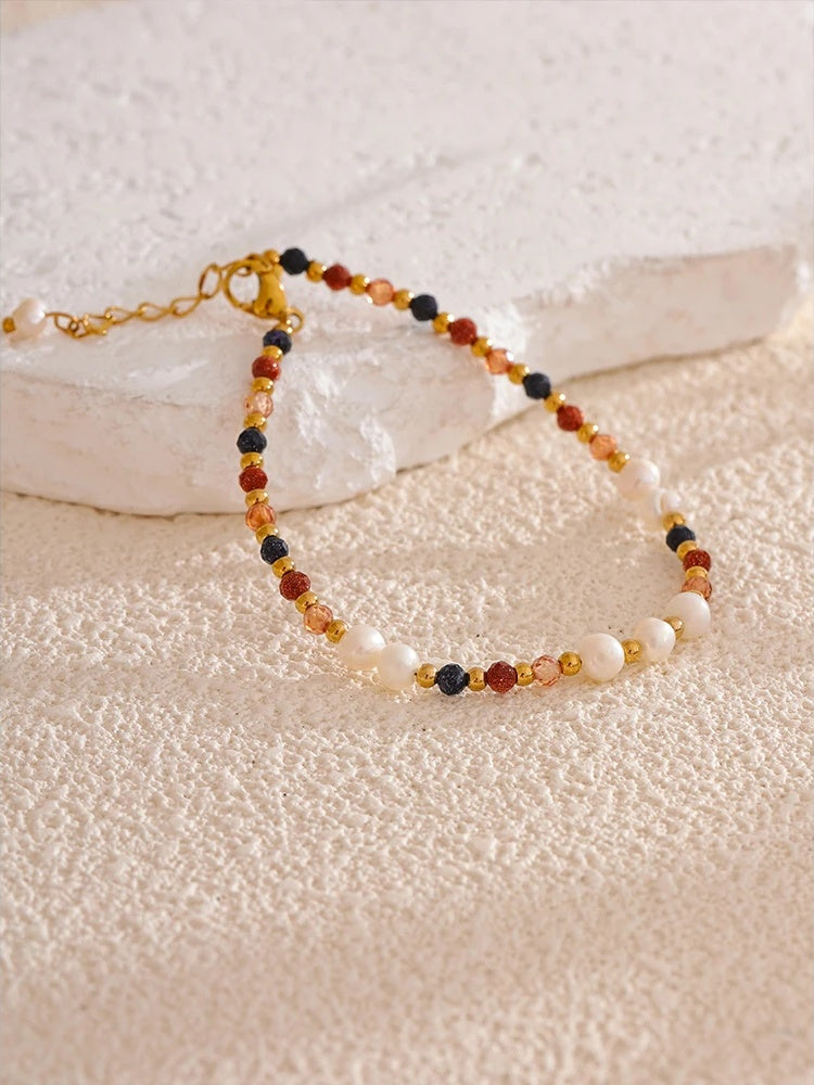 Delicately crafted with freshwater oval pearls and vibrant bead accents, this bracelet combines natural elegance with modern style. The stainless steel chain is enhanced with a real gold PVD plating, ensuring durability and a luxurious finish. Featuring a secure lobster claw clasp and an adjustable extension chain, it offers a comfortable fit for all-day wear. Water-resistant design makes it ideal for everyday use without compromising its shine and appeal.