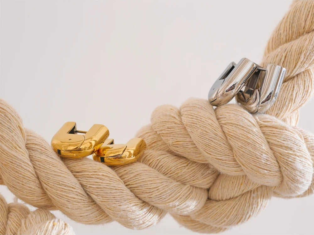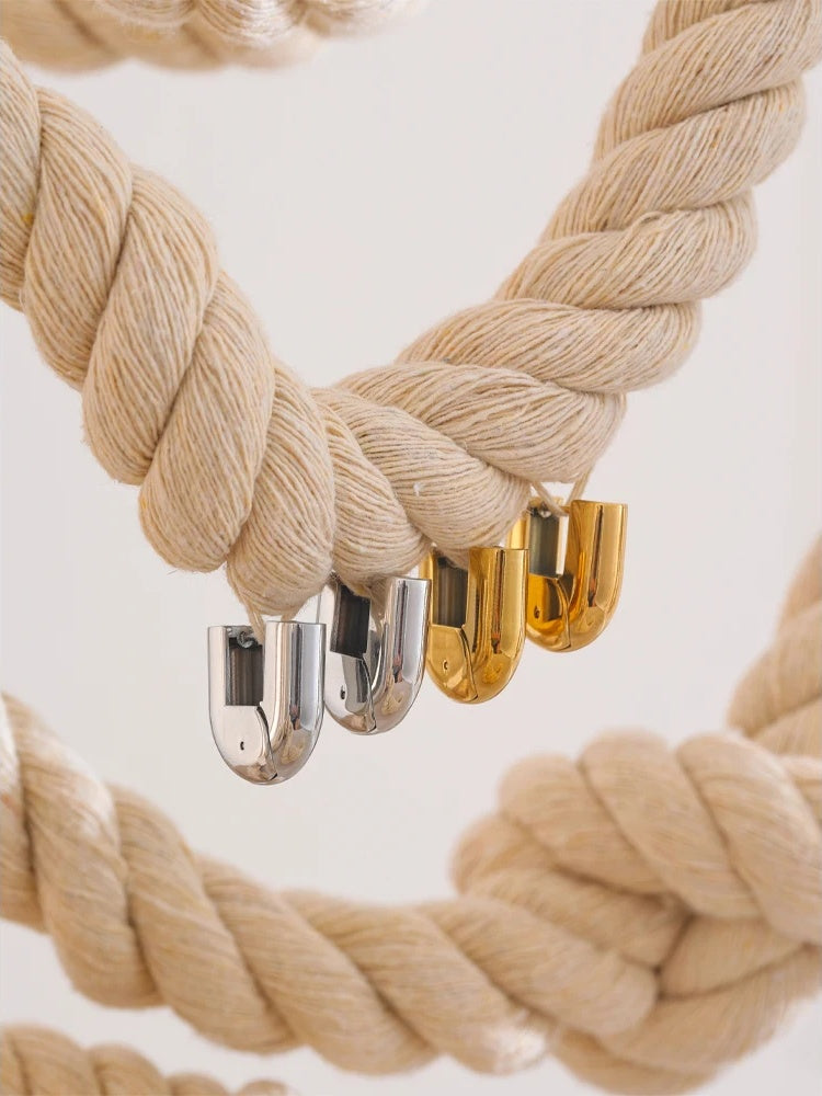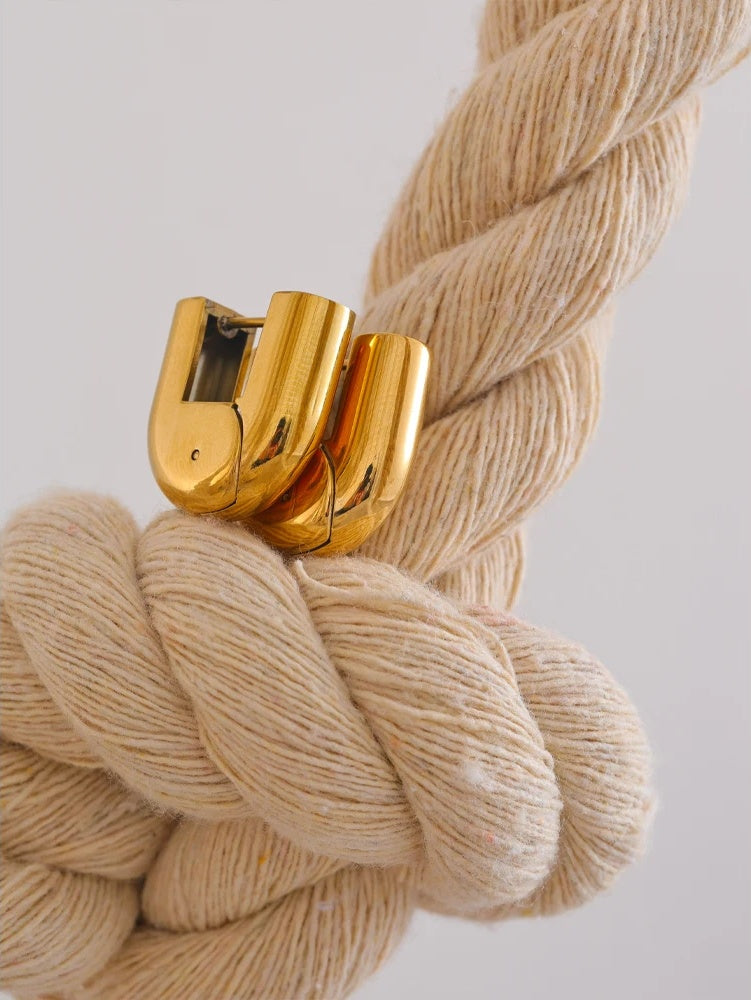 Crafted from durable stainless steel with a glossy finish, these U-shaped hoop earrings feature a hollow design that adds a modern geometric touch. The 18K PVD plating ensures long-lasting shine and resistance to water and wear. Lightweight and comfortable, they offer a sleek, trendy aesthetic suitable for everyday or special occasions. Available in gold and platinum tones to effortlessly complement any outfit.