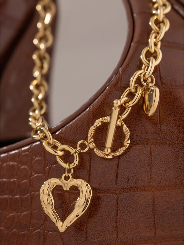 Crafted from durable stainless steel with a rich golden finish, this necklace features a bold chain design accented by two heart-shaped pendants. The electroplated PVD real gold plating ensures long-lasting shine and resistance to tarnish. A twisted toggle clasp adds both security and a unique touch to the contemporary geometric aesthetic. Perfect for everyday wear or special occasions, it combines modern style with lasting quality.