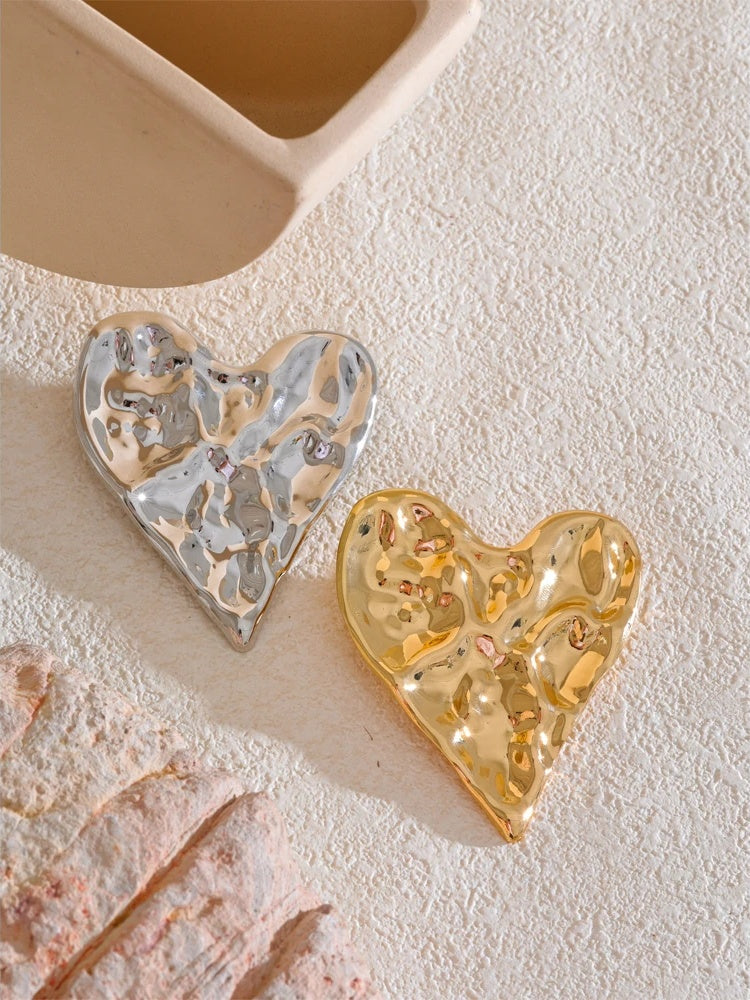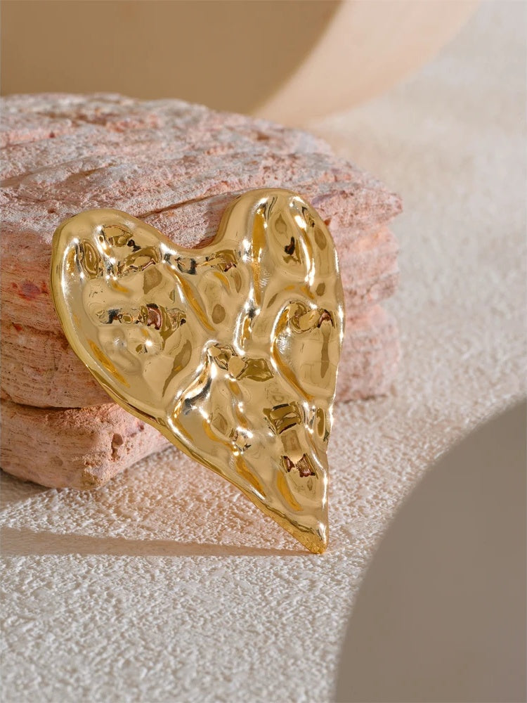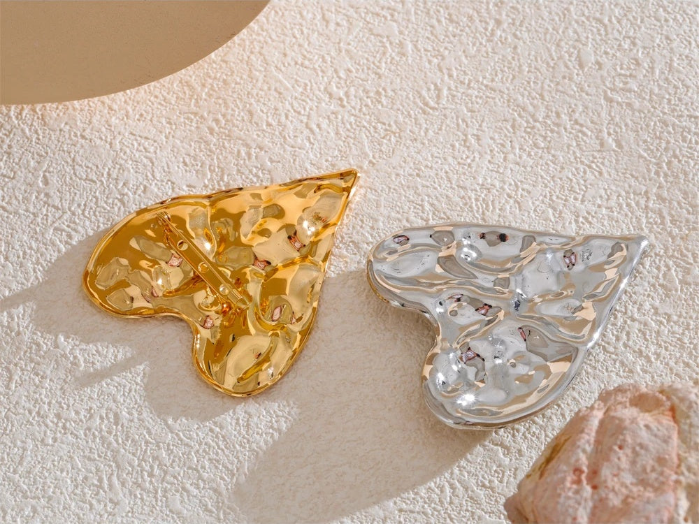 Crafted from durable stainless steel with 18K PVD gold plating, this heart-shaped brooch showcases a unique hammered texture for a modern, trendy look. Its waterproof design ensures lasting shine and wearability, making it a versatile accessory for any outfit. Lightweight and easy to pin, it adds a subtle yet stylish accent to clothing, bags, or scarves. Suitable for wholesale, drop shipping, or retail, this brooch combines fashion with quality materials for everyday elegance.