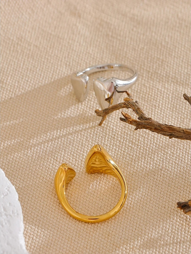 Meet your new everyday favorite: a sleek, heart-shaped open ring crafted from durable stainless steel and finished in your choice of gold-plated or platinum-plated shine. Its minimalist silhouette feels modern yet timeless, while the polished surface adds a refined glow that transitions effortlessly from coffee runs to evening plans.