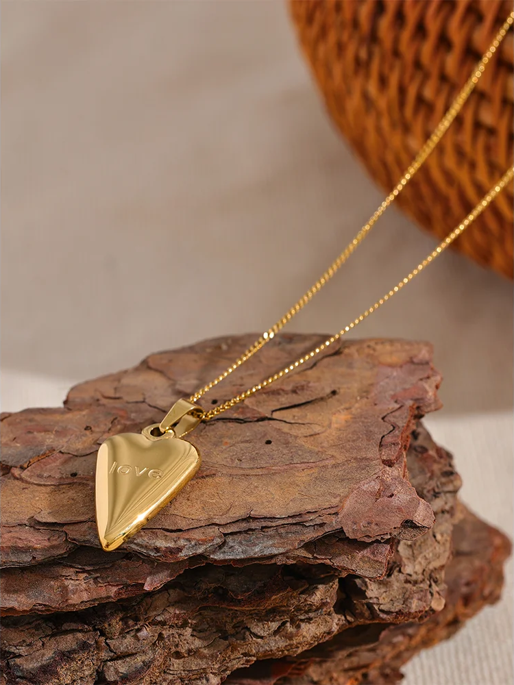 Elevate your everyday look with a heart-shaped pendant necklace that balances timeless sentiment and modern minimalism. Crafted from durable 316L stainless steel and finished with PVD gold plating, this polished piece showcases a subtle “love” engraving—an understated detail that feels personal without being overdone. Designed for daily wear, it’s waterproof and resistant to high-concern chemicals, helping maintain its shine through life’s busy moments.