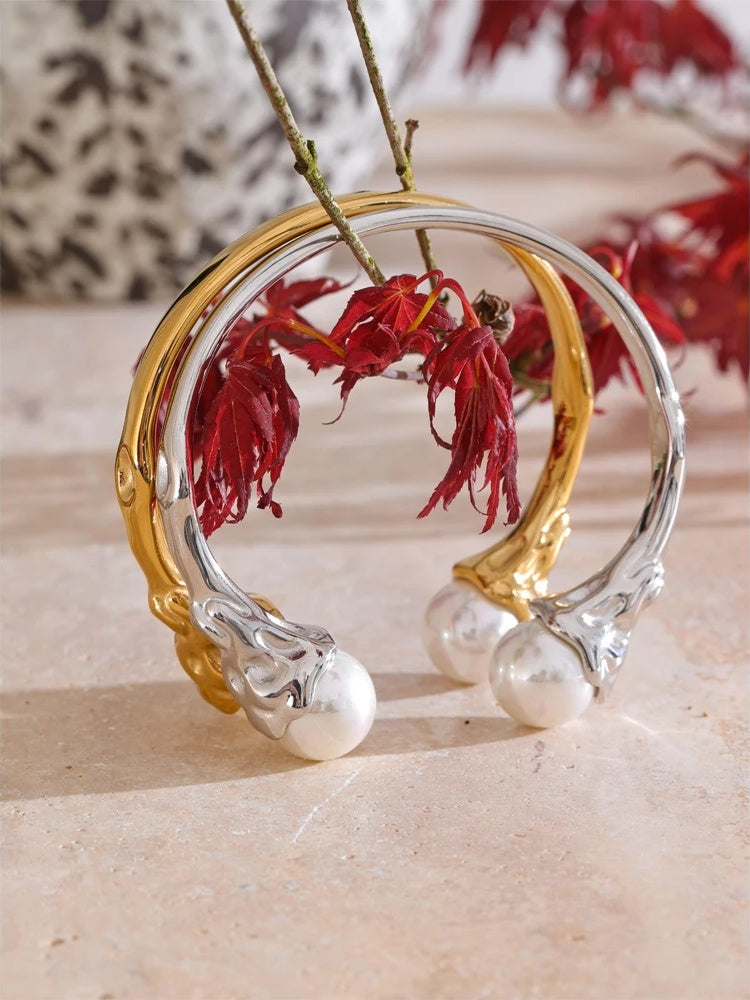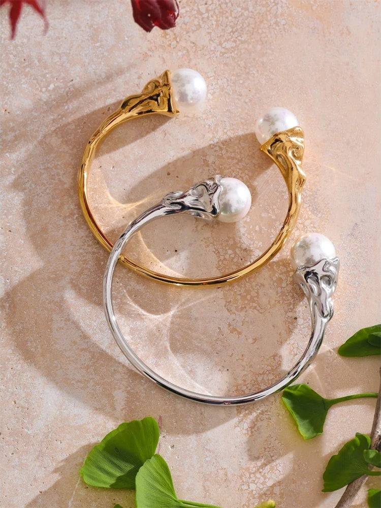 Why you’ll love it: A sleek, rust-resistant bangle that adds a polished touch to office staples, evening dresses, and off-duty denim alike. Its pearl accents pair beautifully with pearl studs, gold-plated earrings, or your favorite delicate chains—making it an easy, giftable piece from Hoops & Gems you’ll reach for often.