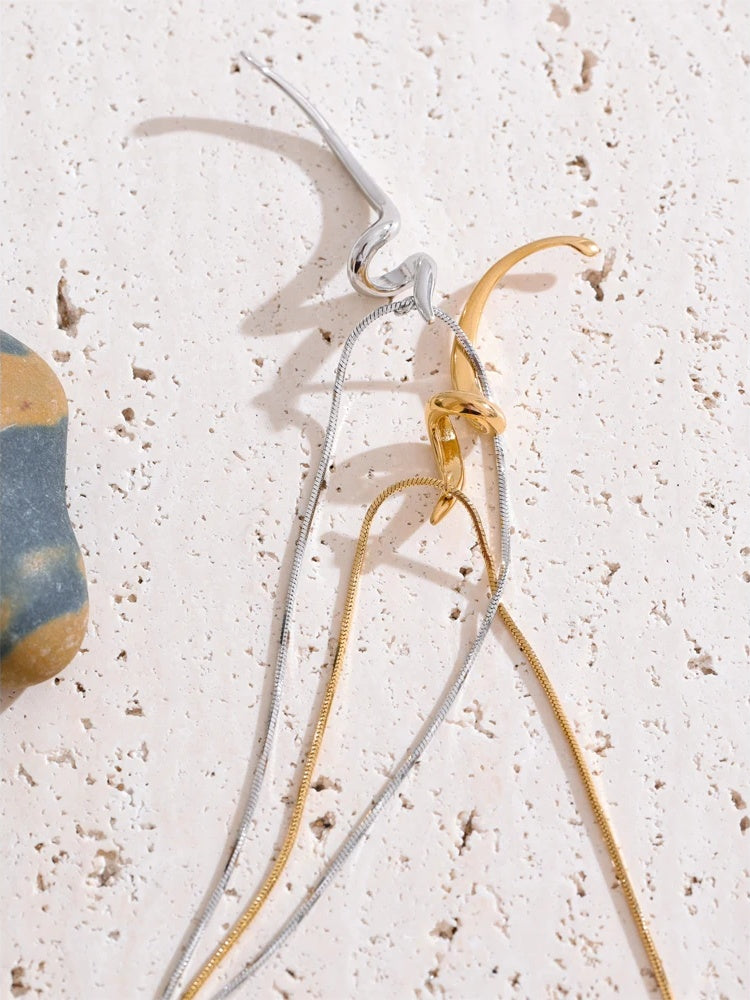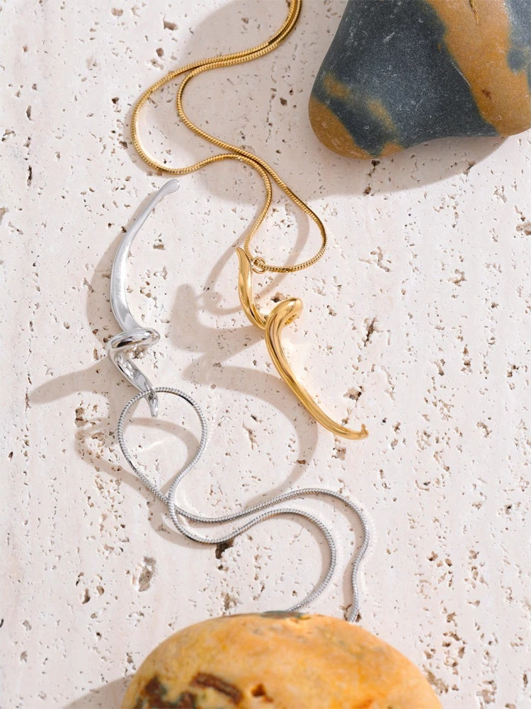 Modern and sculptural, this geometric pendant brings a refined edge to everyday style. Crafted in durable stainless steel and finished with PVD real gold plating (or a cool platinum tone), it’s thoughtfully designed to be water-resistant for worry-free, daily wear. The irregular, abstract silhouette catches the light beautifully—striking on its own and effortless to layer.