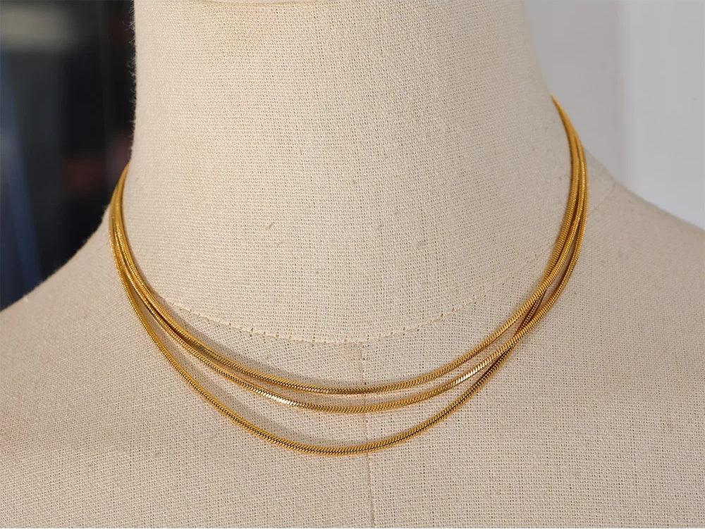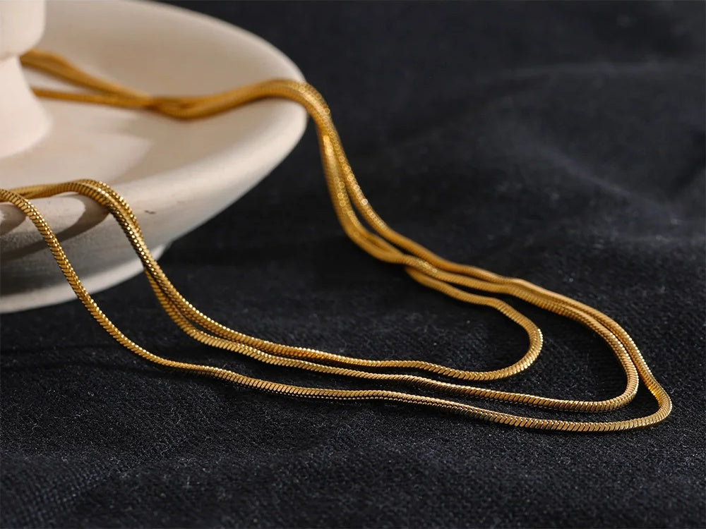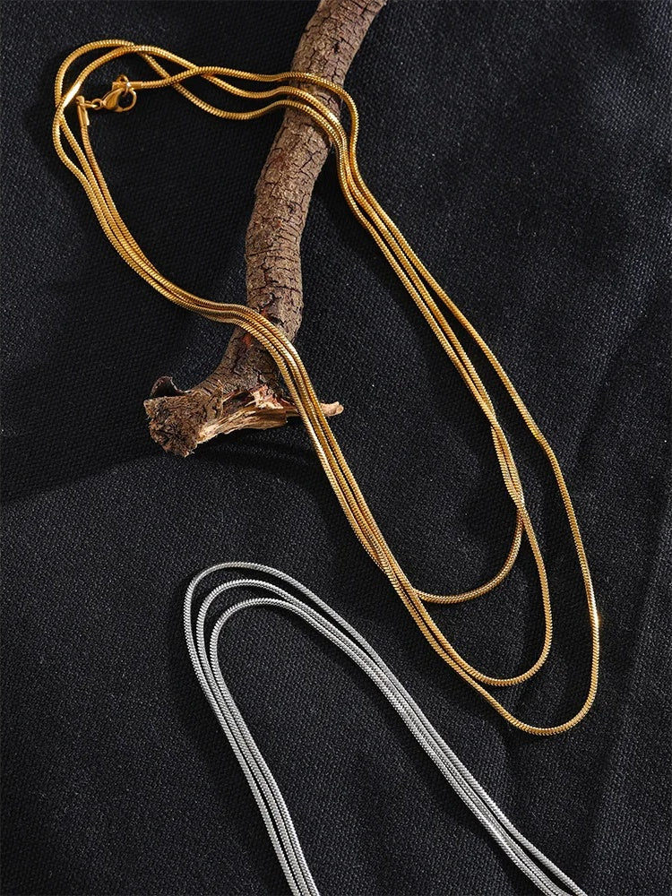 Featuring a layered design, this long chain necklace offers adjustable length for a customizable fit. Crafted from durable stainless steel with an 18K gold plating, it combines both strength and style. The sleek geometric pattern enhances its modern, trendy appeal, making it a versatile accessory suitable for various outfits and occasions. Waterproof construction ensures lasting wear without tarnishing.
