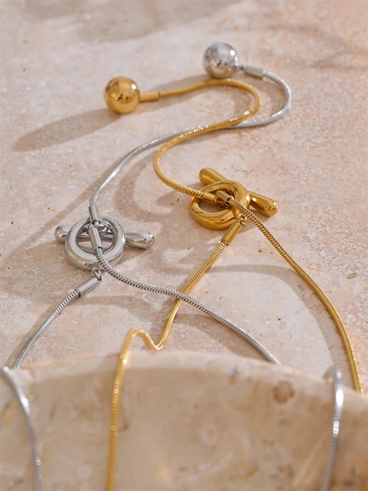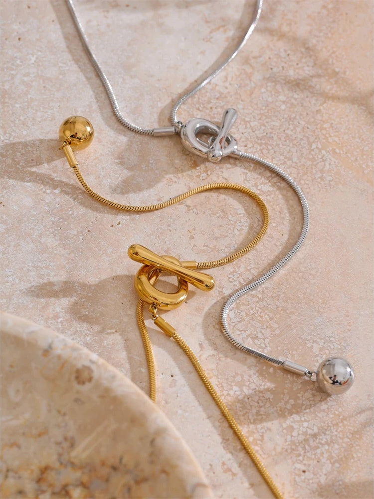 Crafted with a durable stainless-steel core and protected by premium PVD plating in your choice of gold or platinum tone, it’s designed to maintain its color and shine with regular care. An adjustable toggle clasp lets you customize the length for comfortable, personalized styling—wear it as a minimalist statement or layer it with your favorite delicate chains.