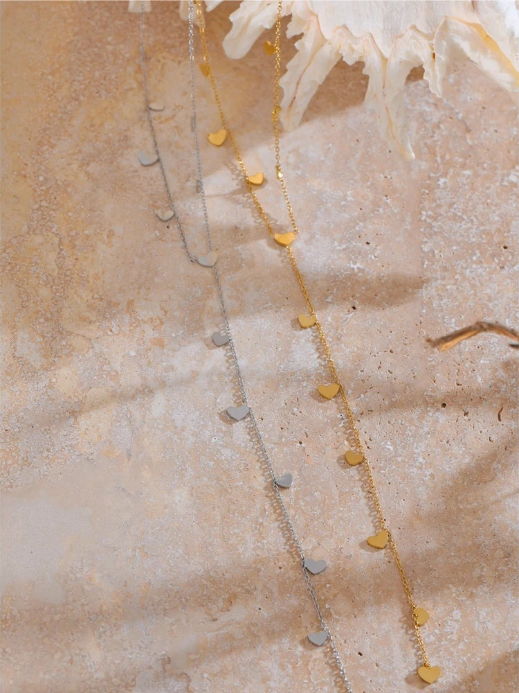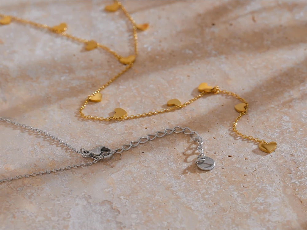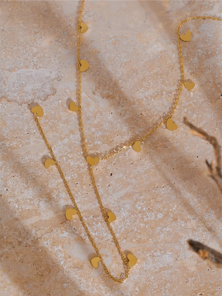 - Design: Slim chain accented with multiple petite, geometric heart charms