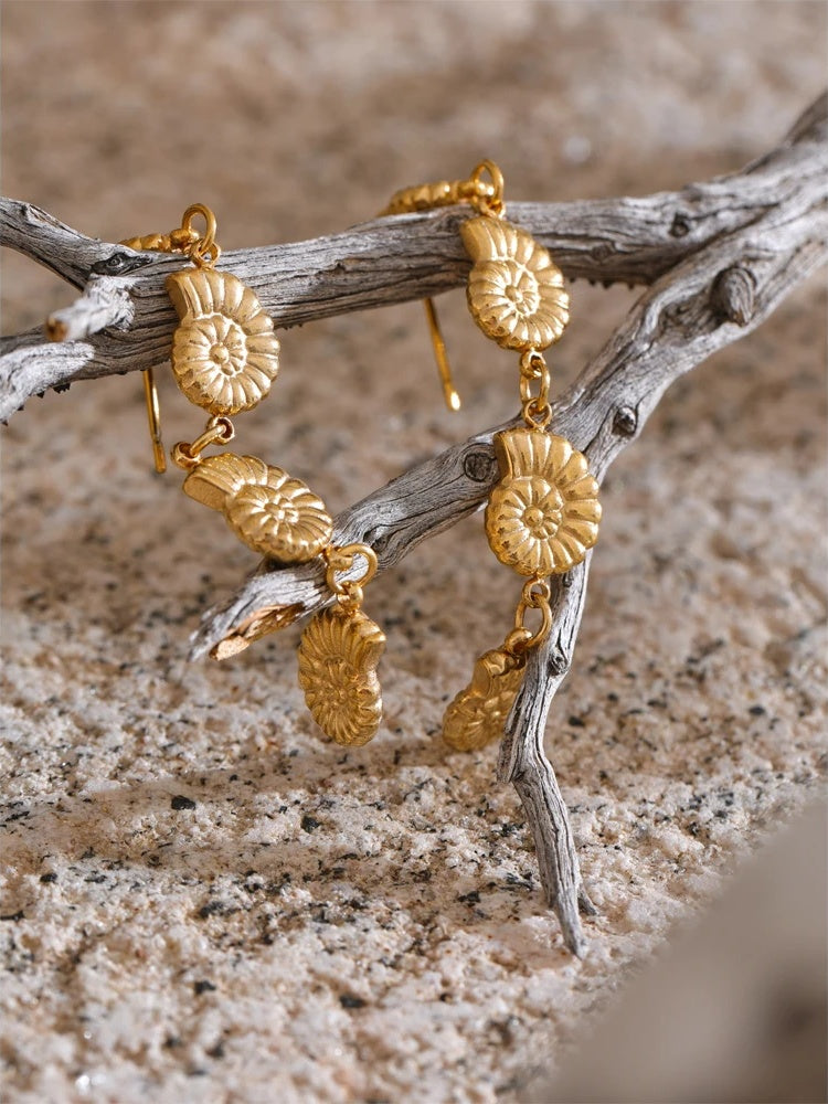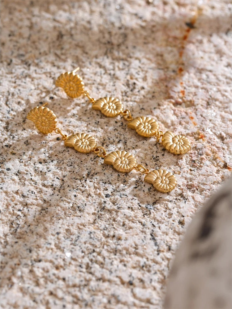 Elevate your everyday with these ocean-inspired geometric drop earrings. Crafted from sturdy stainless steel and finished with real gold PVD plating, they deliver the refined glow of gold-plated earrings with a modern, sculptural silhouette. The conch shell–inspired pattern adds a subtle coastal touch—perfect for beach days, city nights, and everything in between.