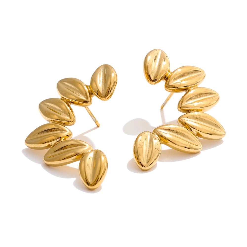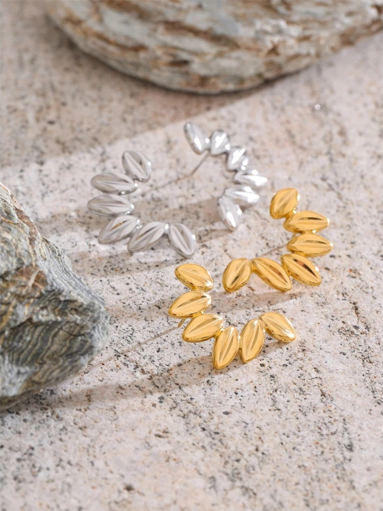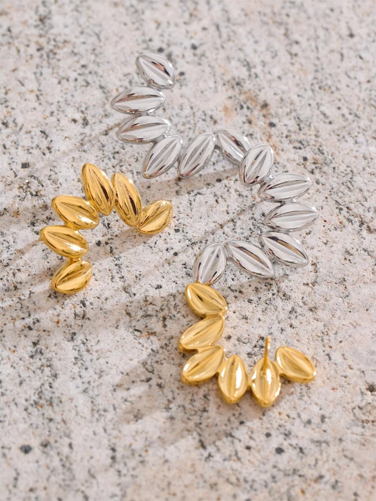 Crafted from durable 316L stainless steel, these metal leaf stud earrings feature a polished, plant-inspired design with a smooth, reflective finish. The earrings are coated with a PVD plating that resists tarnishing, ensuring long-lasting shine and wear. Designed with secure push-back closures, they offer a comfortable fit ideal for everyday use. Available in gold or platinum tones, these studs bring a trendy yet subtle flair to any outfit.