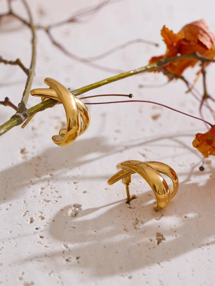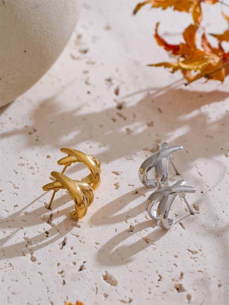 Crafted from durable stainless steel with an 18K PVD plating, these minimalist X-shape stud earrings offer a sleek geometric design perfect for daily wear. The push-back fastening ensures secure and comfortable wear throughout the day. Available in gold or platinum finishes, they combine trendy style with lasting shine, making them a versatile addition to any jewelry collection.