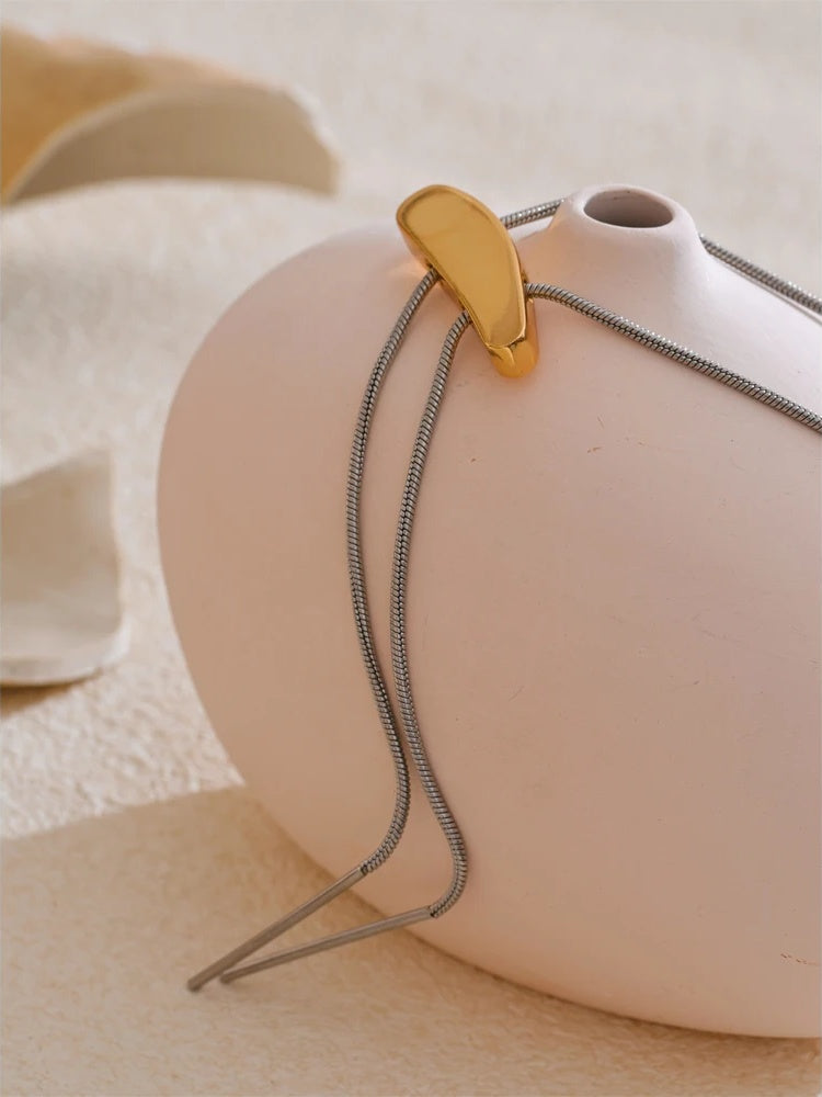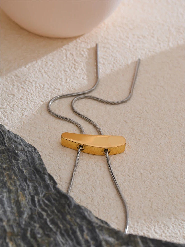 Crafted from durable 316L stainless steel with a PVD real gold-plated geometric accent, this long sweater chain necklace offers a modern minimalist design. The adjustable length ensures a customized fit, making it versatile for layering or standalone wear. Its sleek, water-resistant finish provides lasting shine and resilience against everyday wear. Suitable for all occasions, this necklace blends trend-forward style with practical functionality.