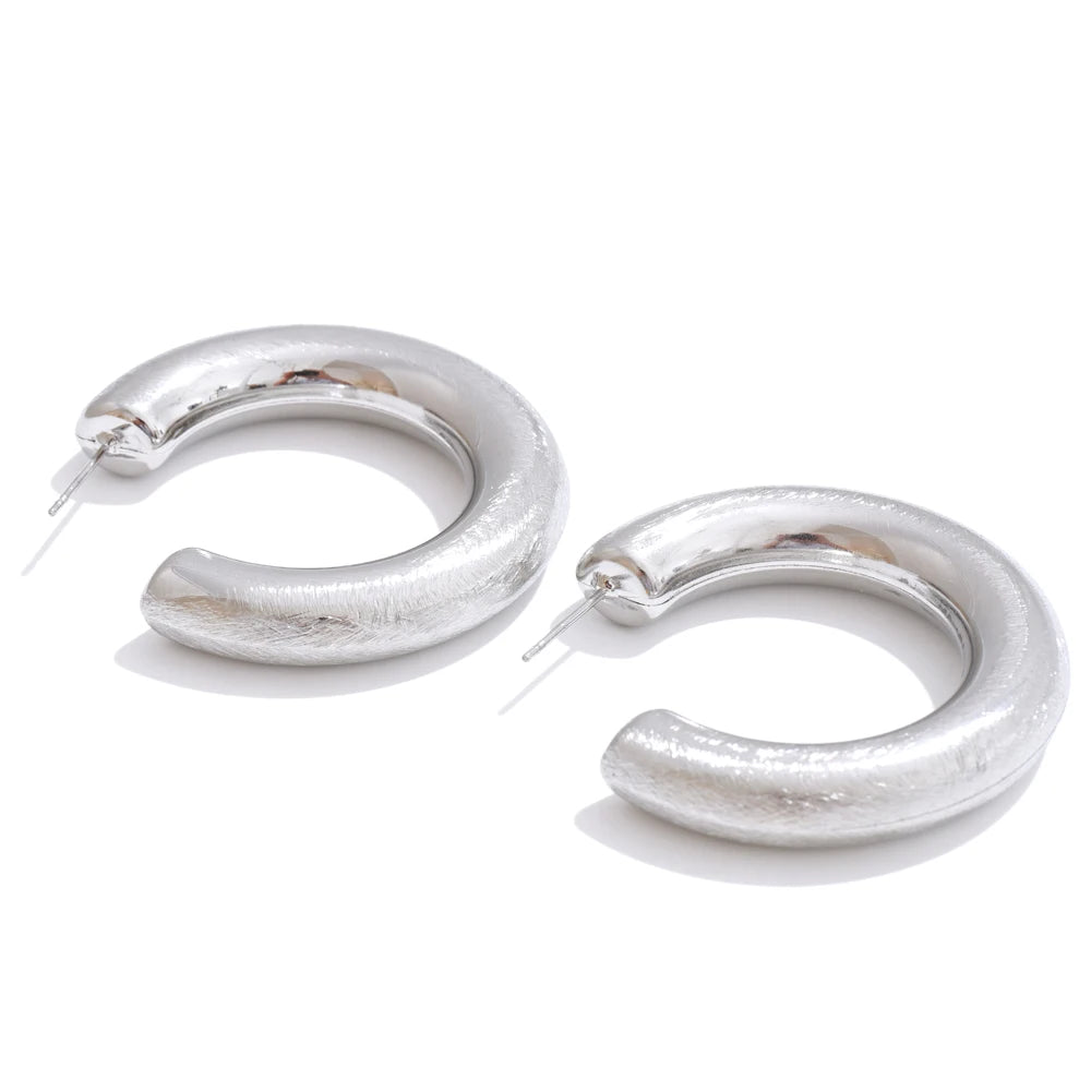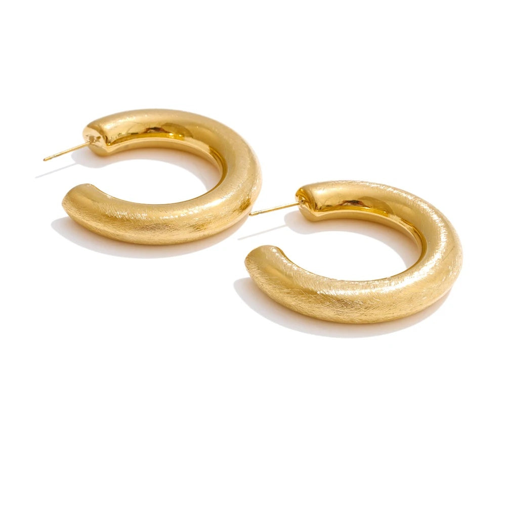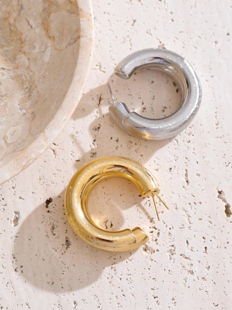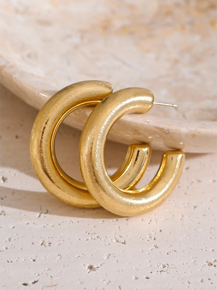 Elevate your everyday with modern C-shaped hoops that balance subtle texture and smooth curves. Expertly crafted in polished stainless steel with an optional PVD gold-plated finish, these lightweight hoop earrings deliver effortless shine and comfort from day to night. Their clean silhouette makes them a versatile choice for everything from casual tees to tailored evening looks.