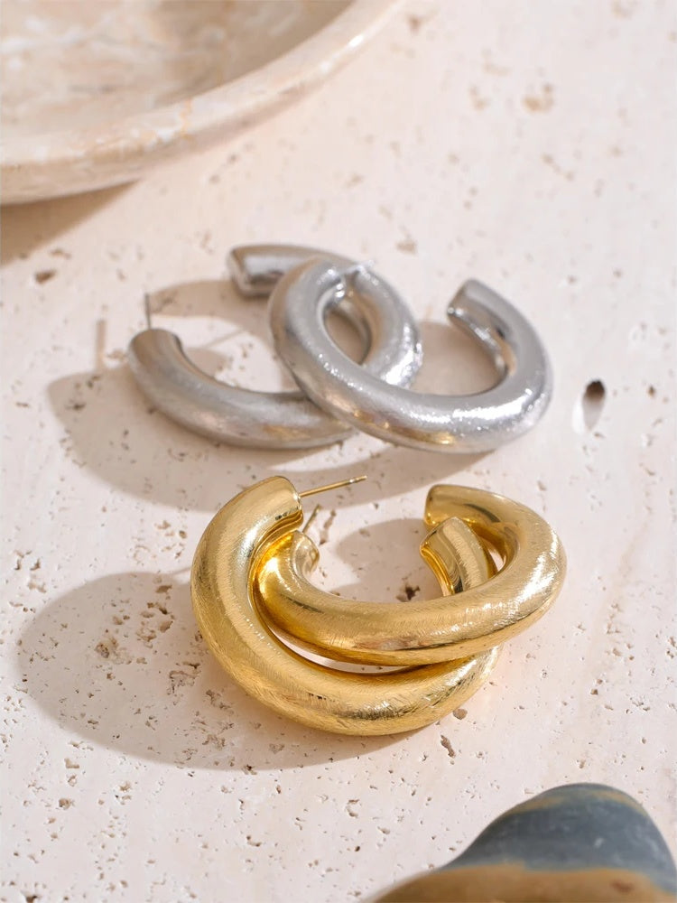 Style them solo for a clean, sculptural statement, or pair with delicate studs to create a balanced ear stack. The PVD gold-plated option offers a warm, luminous finish, while stainless steel brings a cool, minimalist edge.