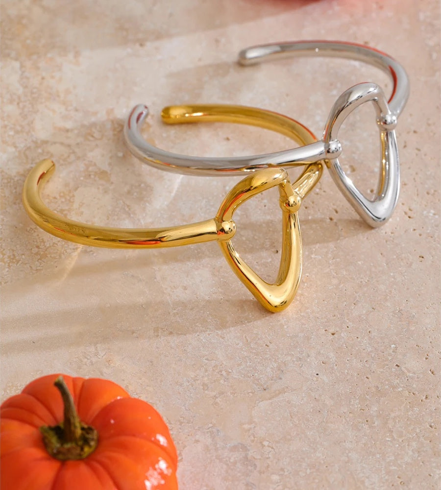 Crafted from durable stainless steel with a sleek gold-tone finish, this oval hollow cuff bracelet offers a minimalist geometric design that complements any outfit. Its open cuff style ensures easy wear and a comfortable fit for all wrist sizes. The PVD plating provides long-lasting shine and waterproof durability, making it ideal for everyday use.