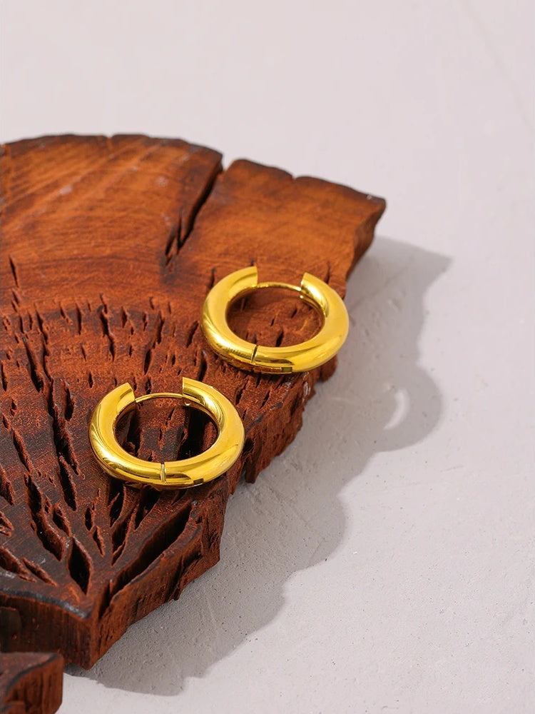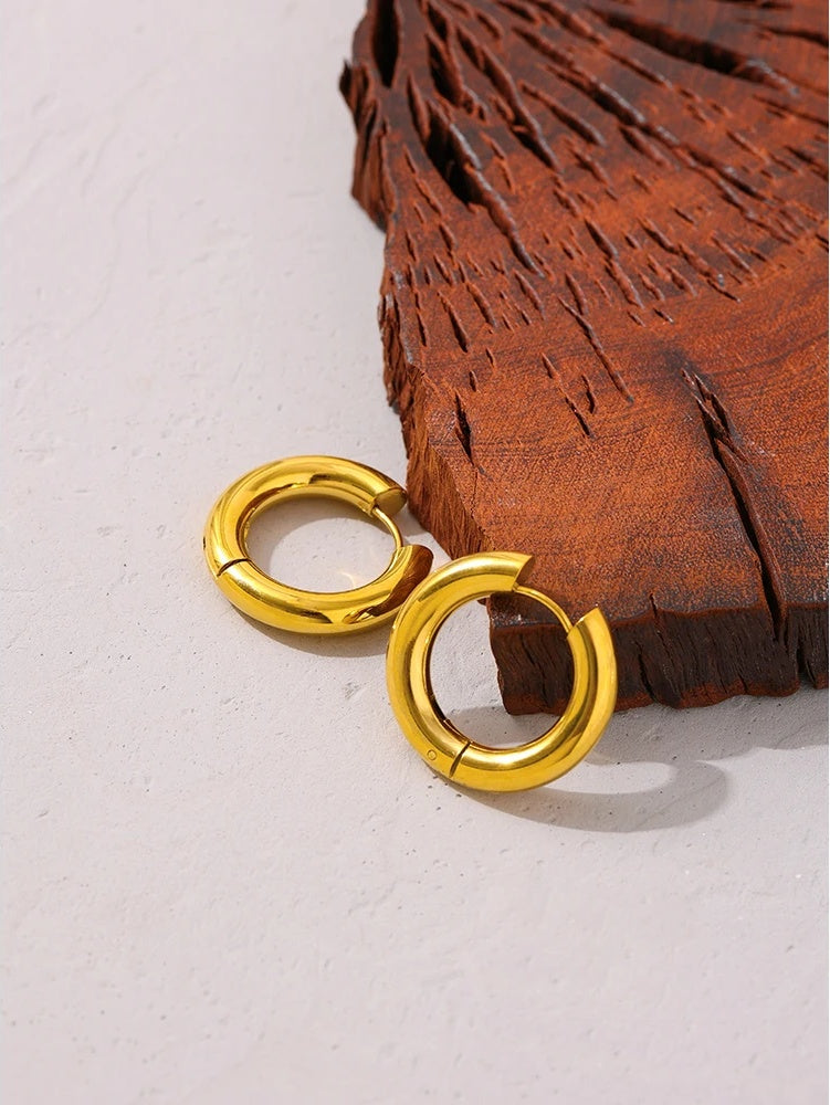 Crafted from stainless steel with an 18K gold plating, these round hollow hoop earrings offer a sleek and minimalist design. Their lightweight and waterproof construction make them ideal for everyday wear, while the smooth, polished finish adds a subtle shine. Perfect for casual or sporty styles, these hoops provide a versatile accessory that complements a variety of outfits.